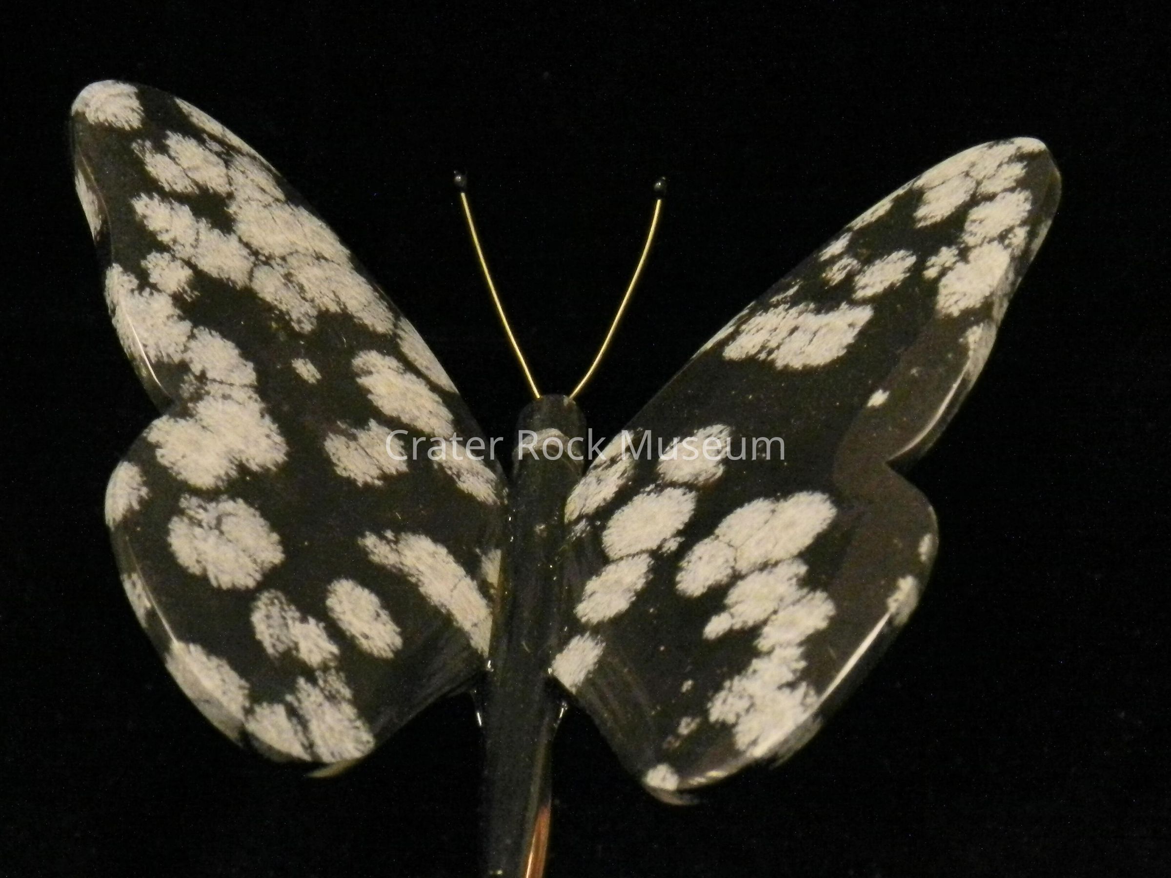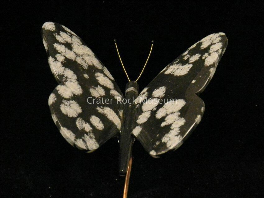 Butterfly (small): Body is obsidian. Wings are snowflake obsidian. Metal stand.Collection