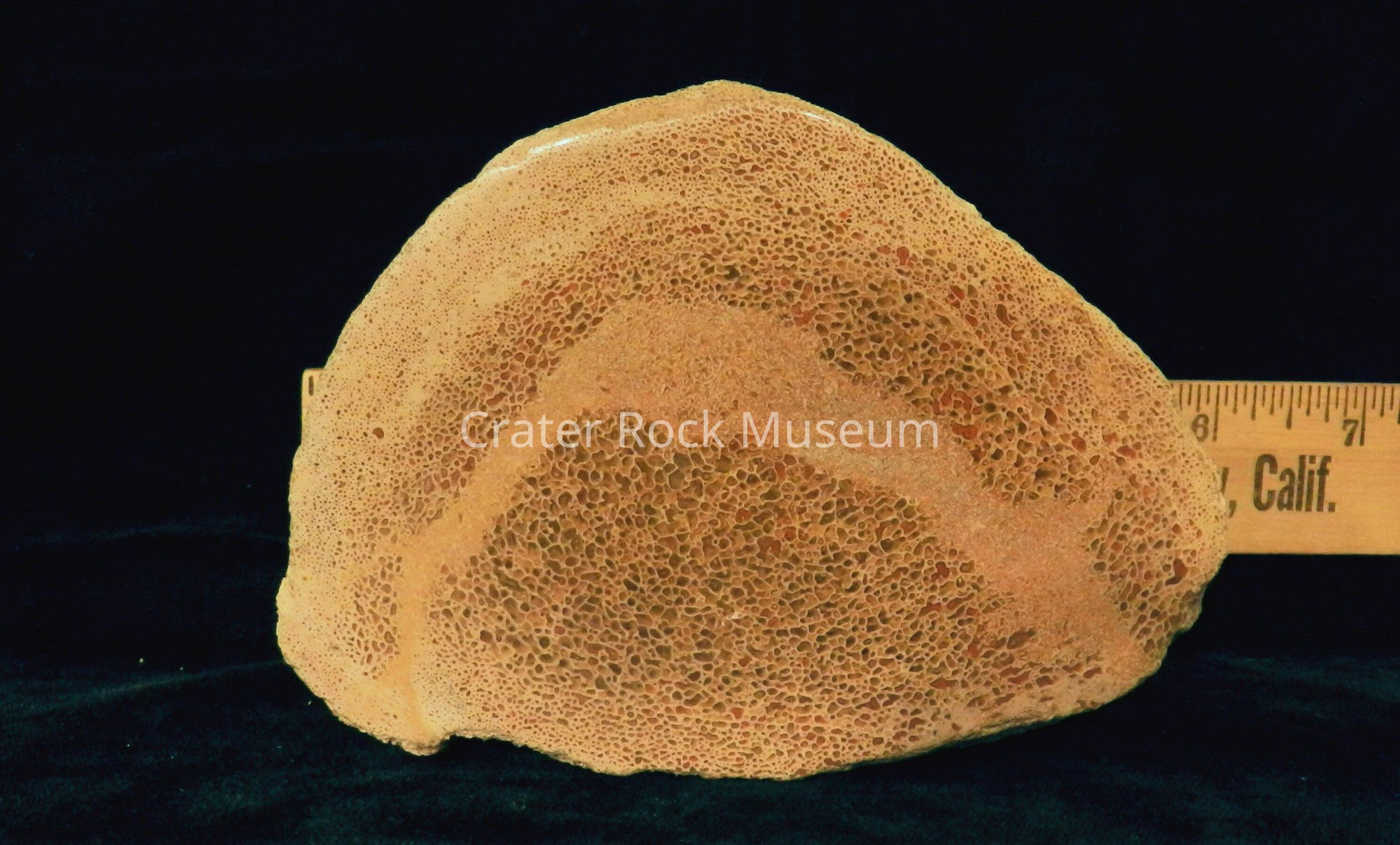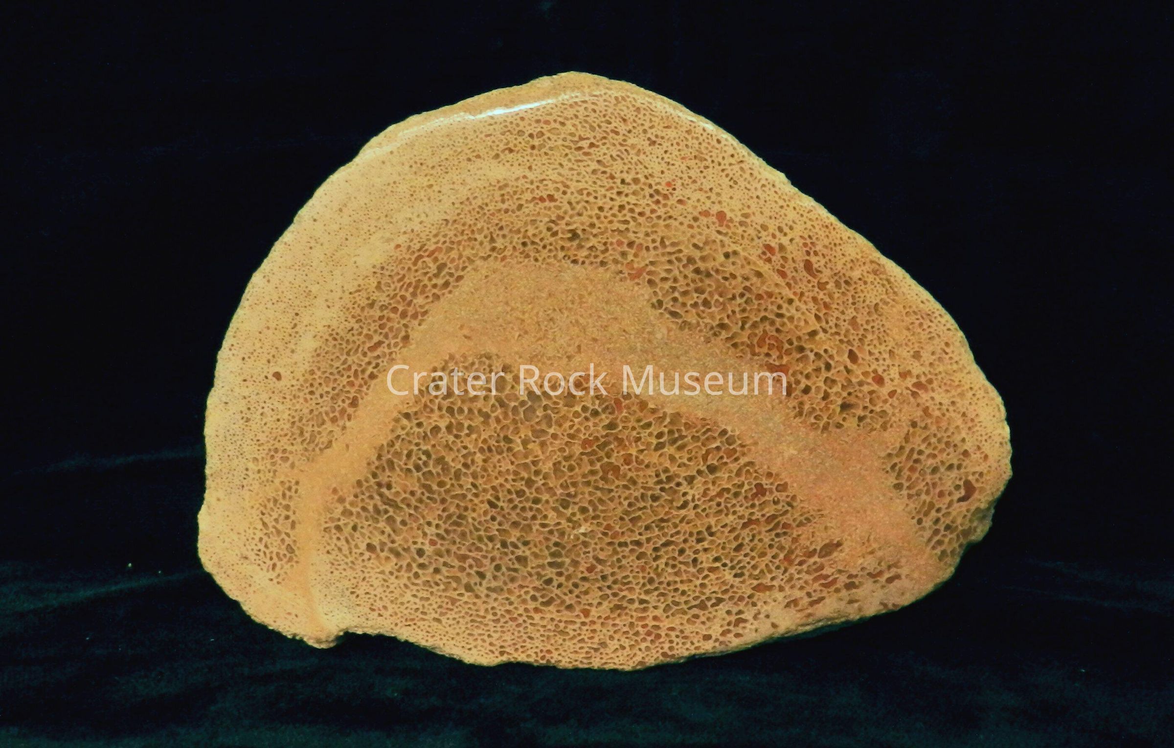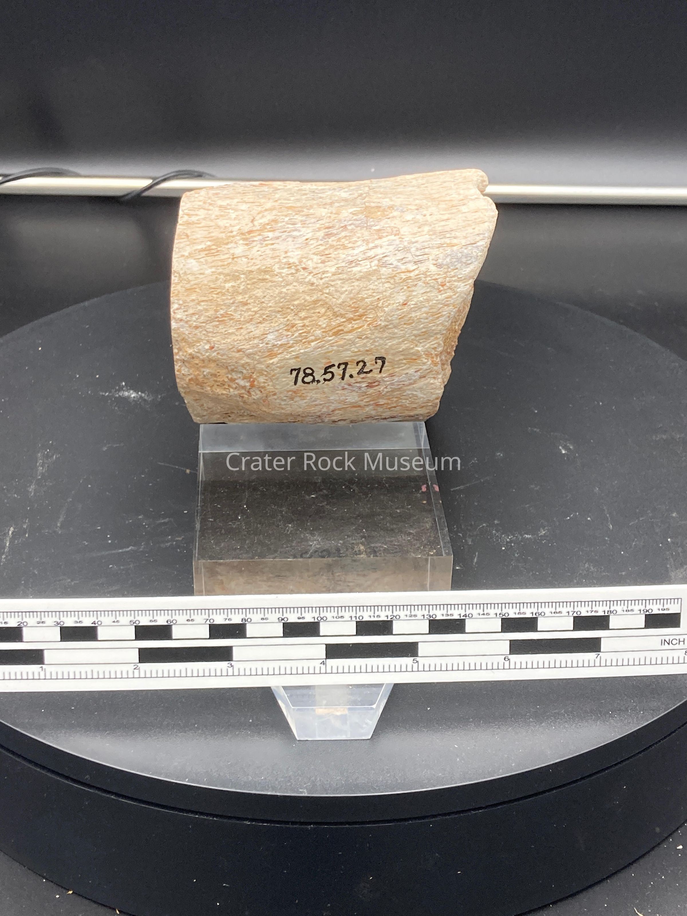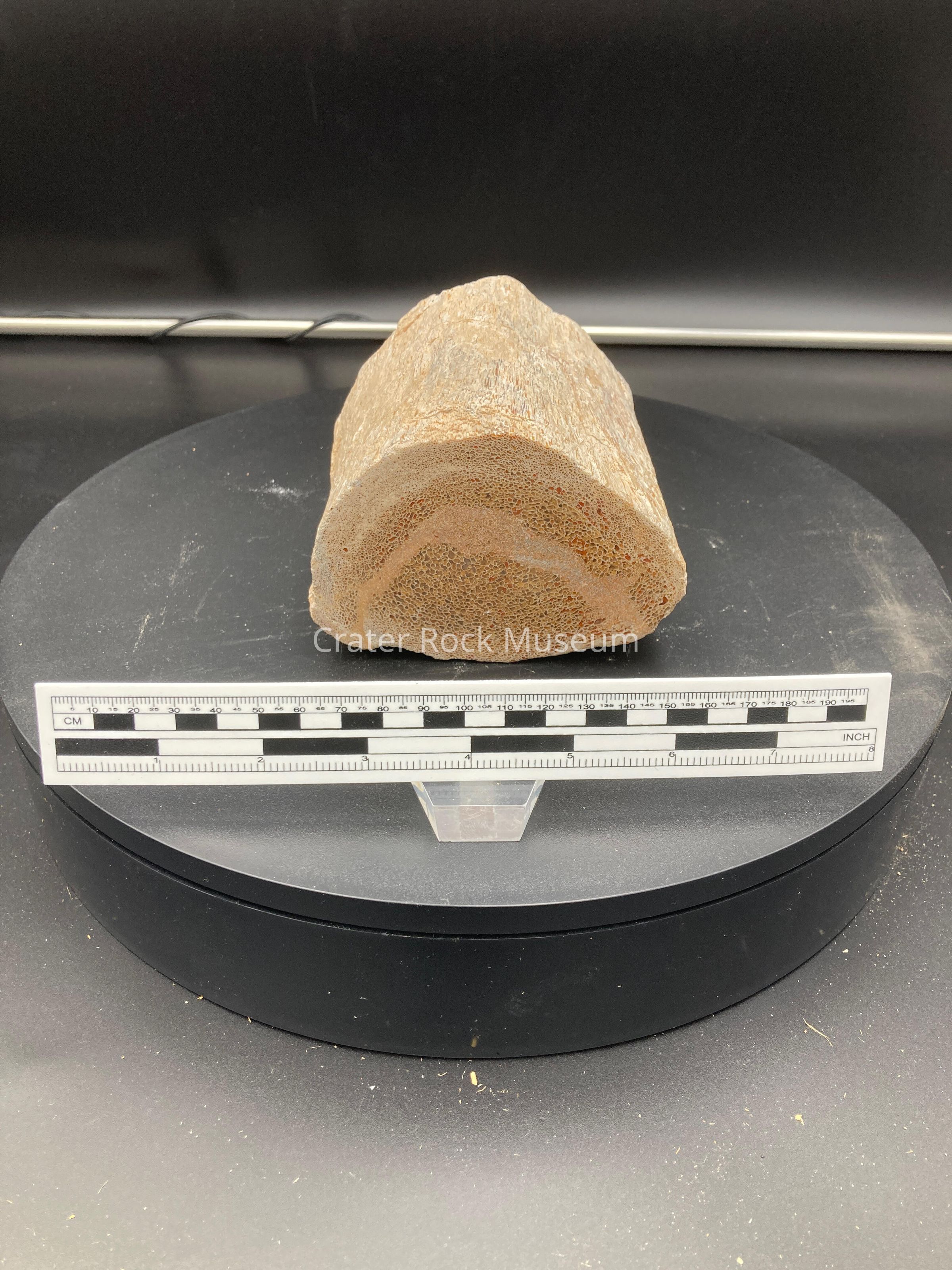 Description: Fossilized reptile bone (front leg) (species unknown). Various shades of beige, tan, orange with noticeable porosity.