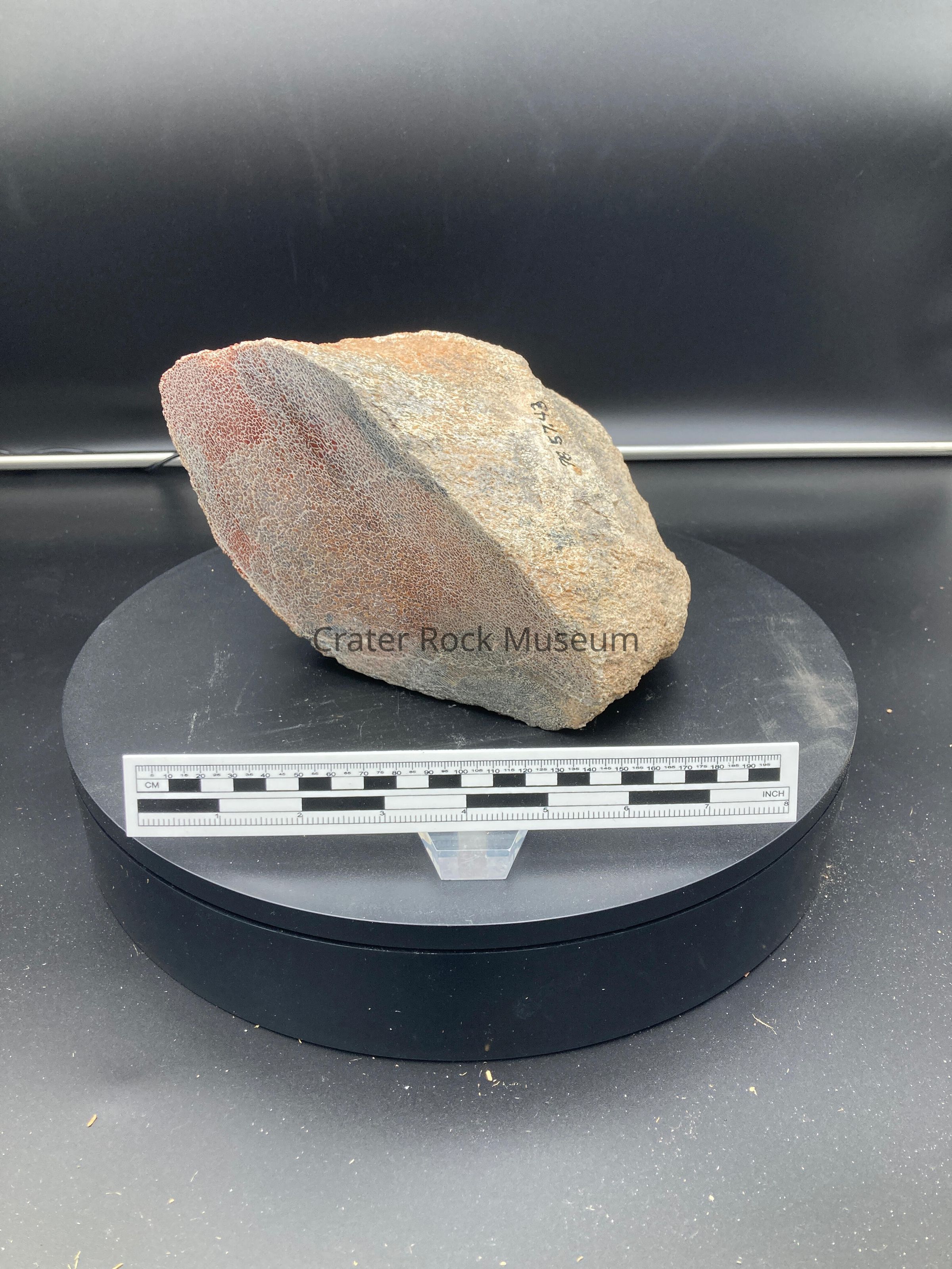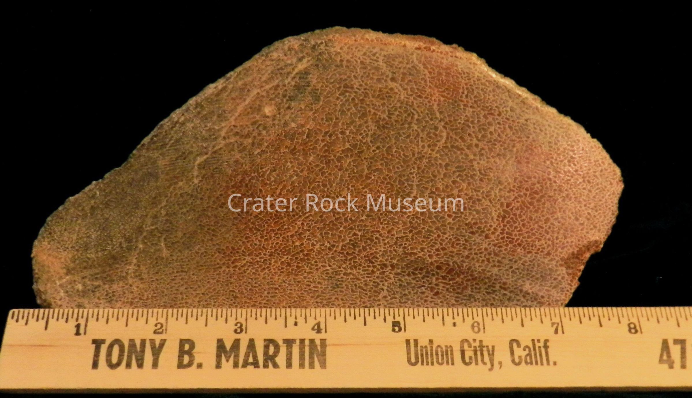 Description: Fossilized reptile bone (species unknown) cut and polished at one end. Various shades of beige, blue-gray, and red - with noticeable porosity.