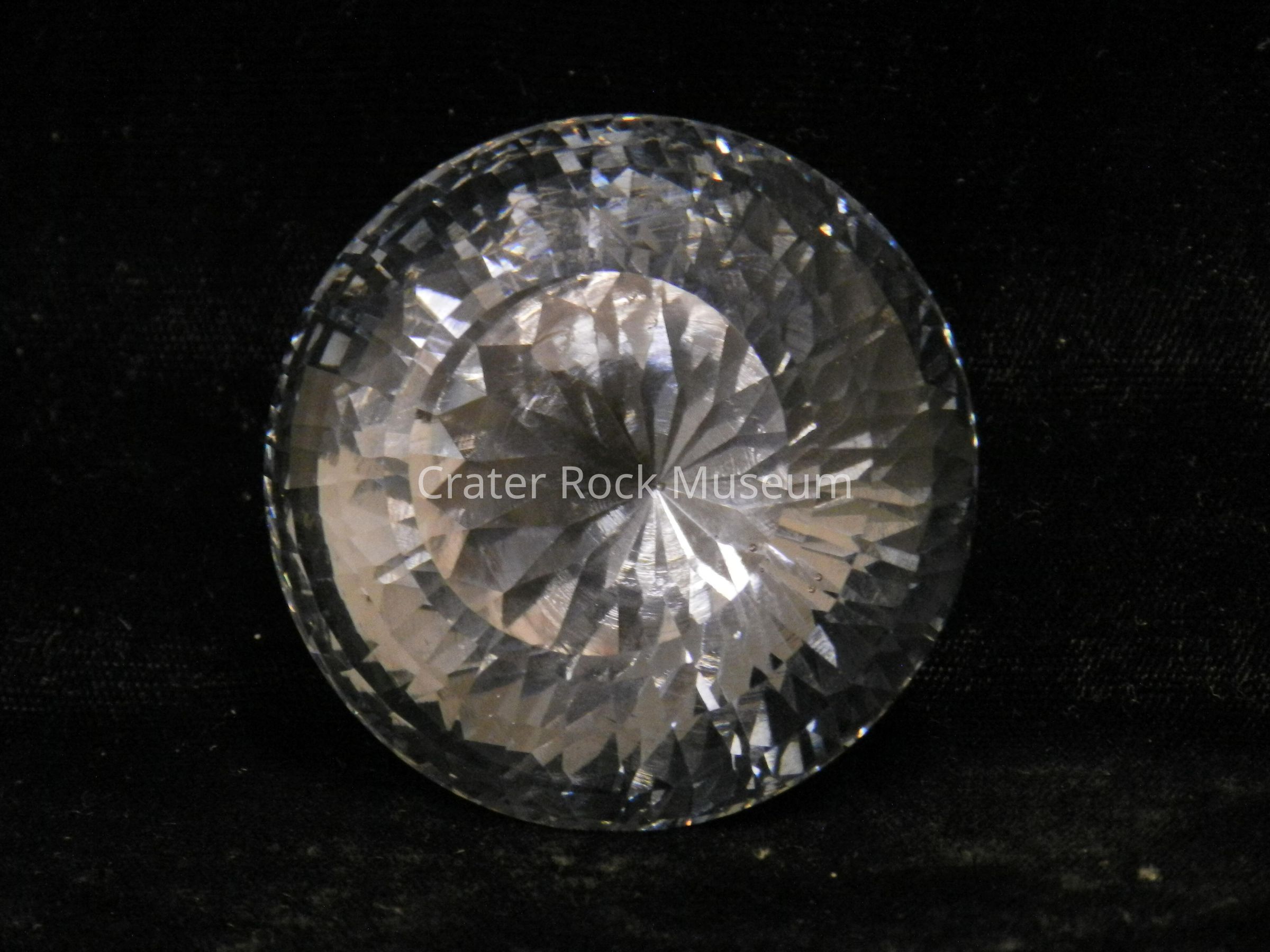 Crystal (medium, blue/purple): Synthetic glass (SynG) cut in "Scotch Cut". Blue/purple. 620 cts. 450 facets. Circular face.Collection