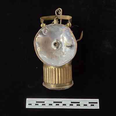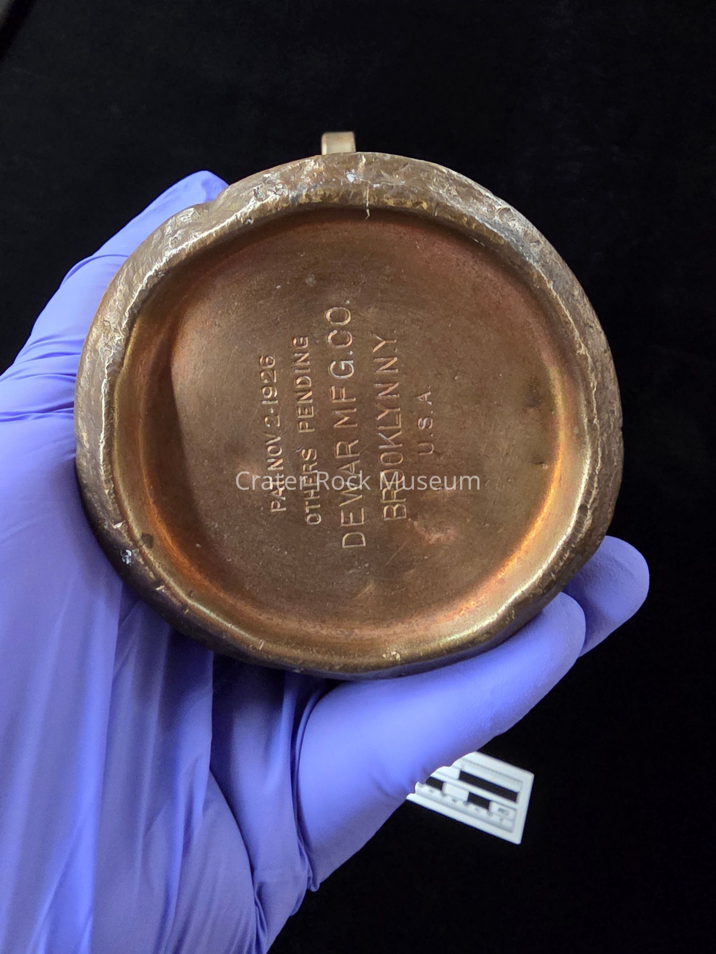 This lamp is a Dew-R-Lite hand lamp model, manufactured around the mid-1930’s by the Dewar Manufacturing Co. of Brooklyn, New York. Dewar produced carbide mining lamps from around 1914 until it was bought by the Wolf Safety Lamp Co. in the late 1930's.Location