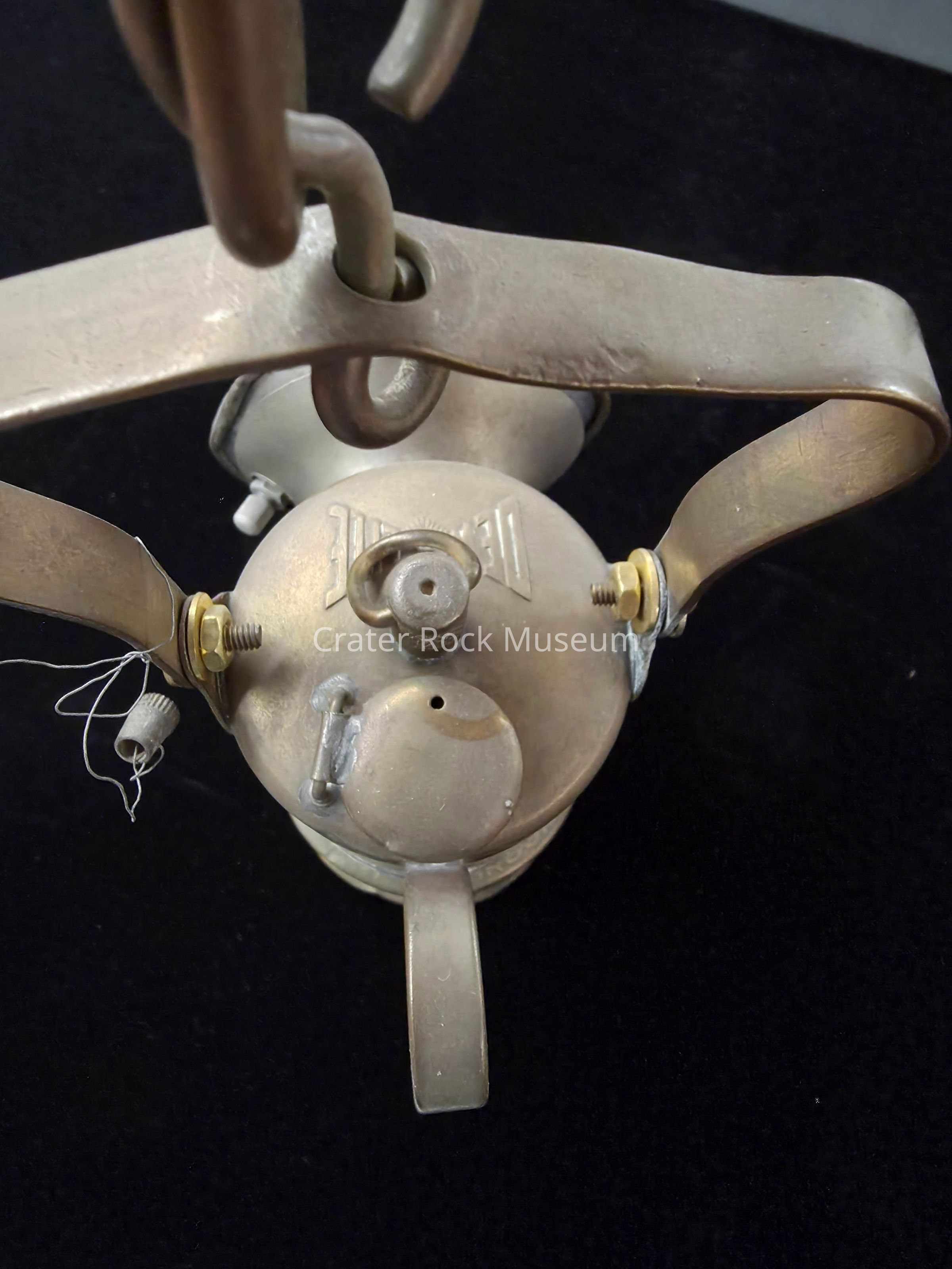 Dew-R-Lite Carbide Miners Lamp with hook. Patented Nov 2, 1926 by Dewar Mfg.