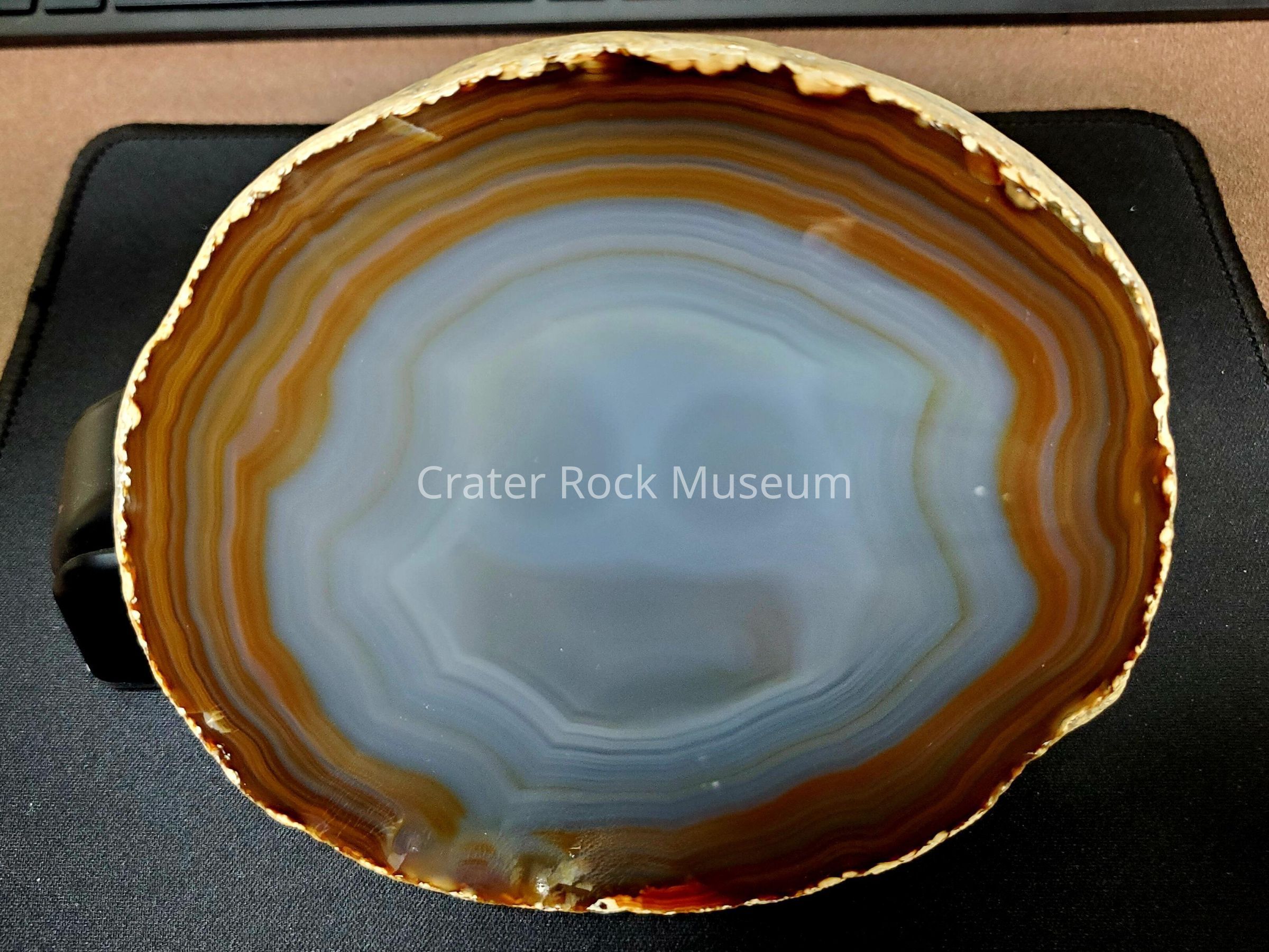 Brazilian Agate Slab. Cut and polished. Face in center.Location