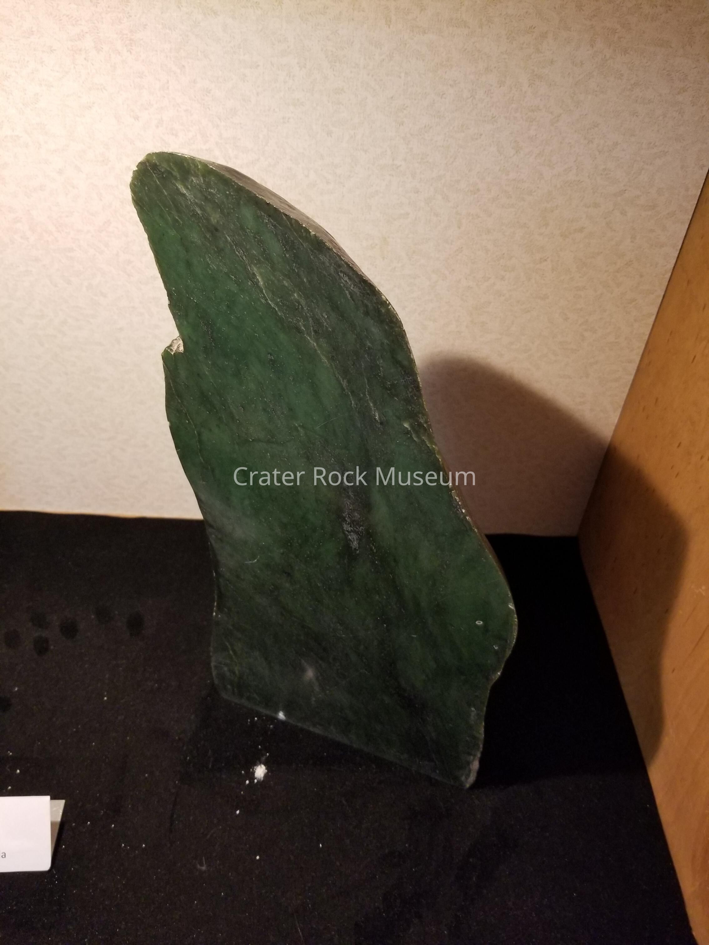 An Elongated piece of Jade (Nephrite) cut on two sides from Lillooet, British Colombia, Canada. Colors: Dark Green with some Black.Dimensions