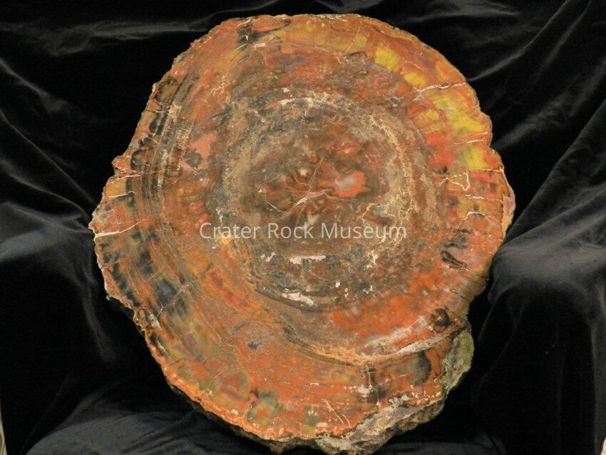 Description: Slab is a complete round with the polished face colored red, golden-yellow, brown, black, some white
