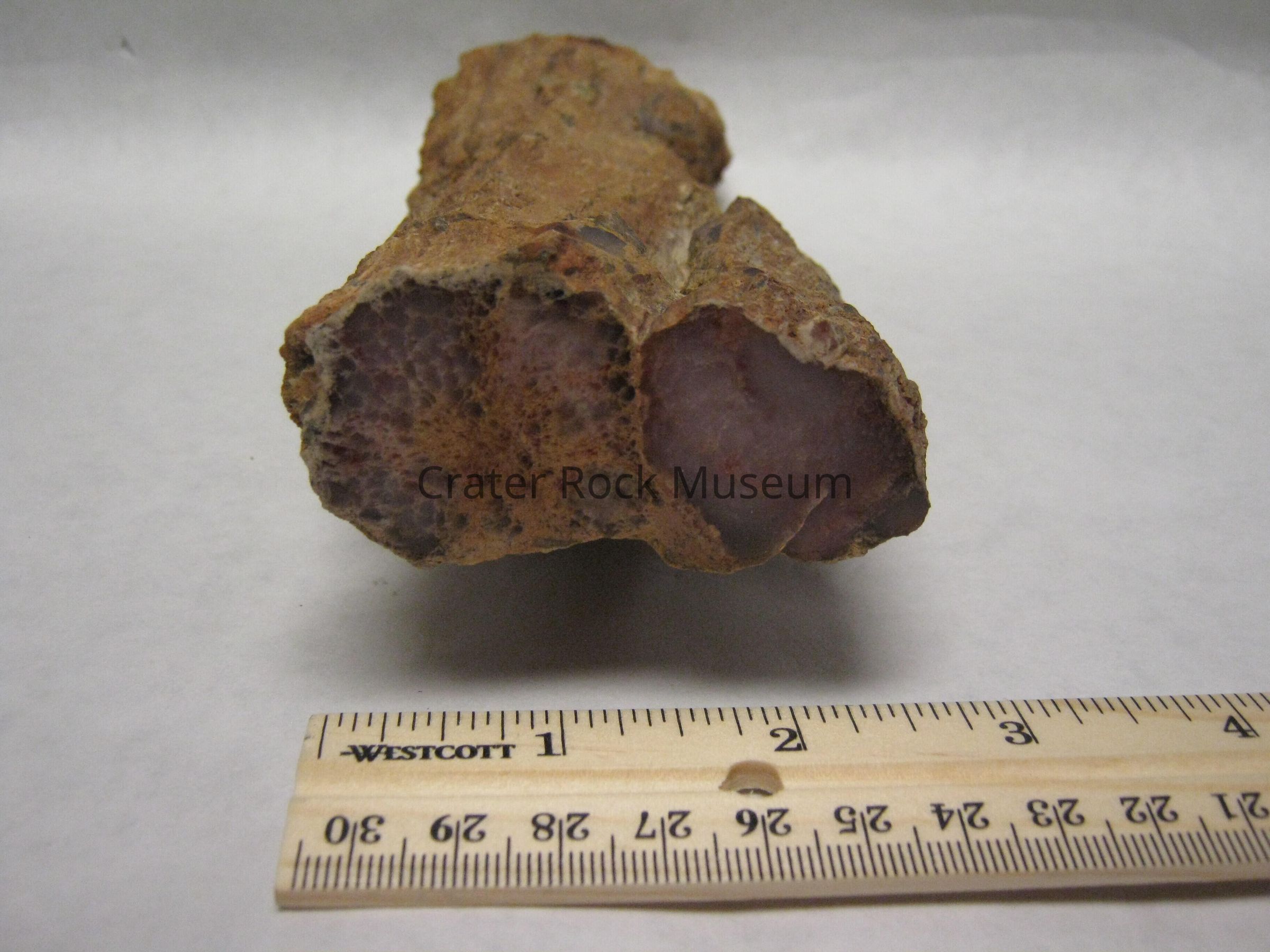 Occurrence: Like petrified wood, limb cast are created in much the same manner. Volcanic ash or silica-rich sediment buries a tree limb, the limb decays, leaving behind an open void. This void works as a mold that fills with amorphous silica that has percolated through the surrounding rock. Once microamorphous silica has filled the mold and the crystallization process to a (quartz)chalcedony or opal is complete, the result is a siliceous rock with the same exterior markings as the original limb.
