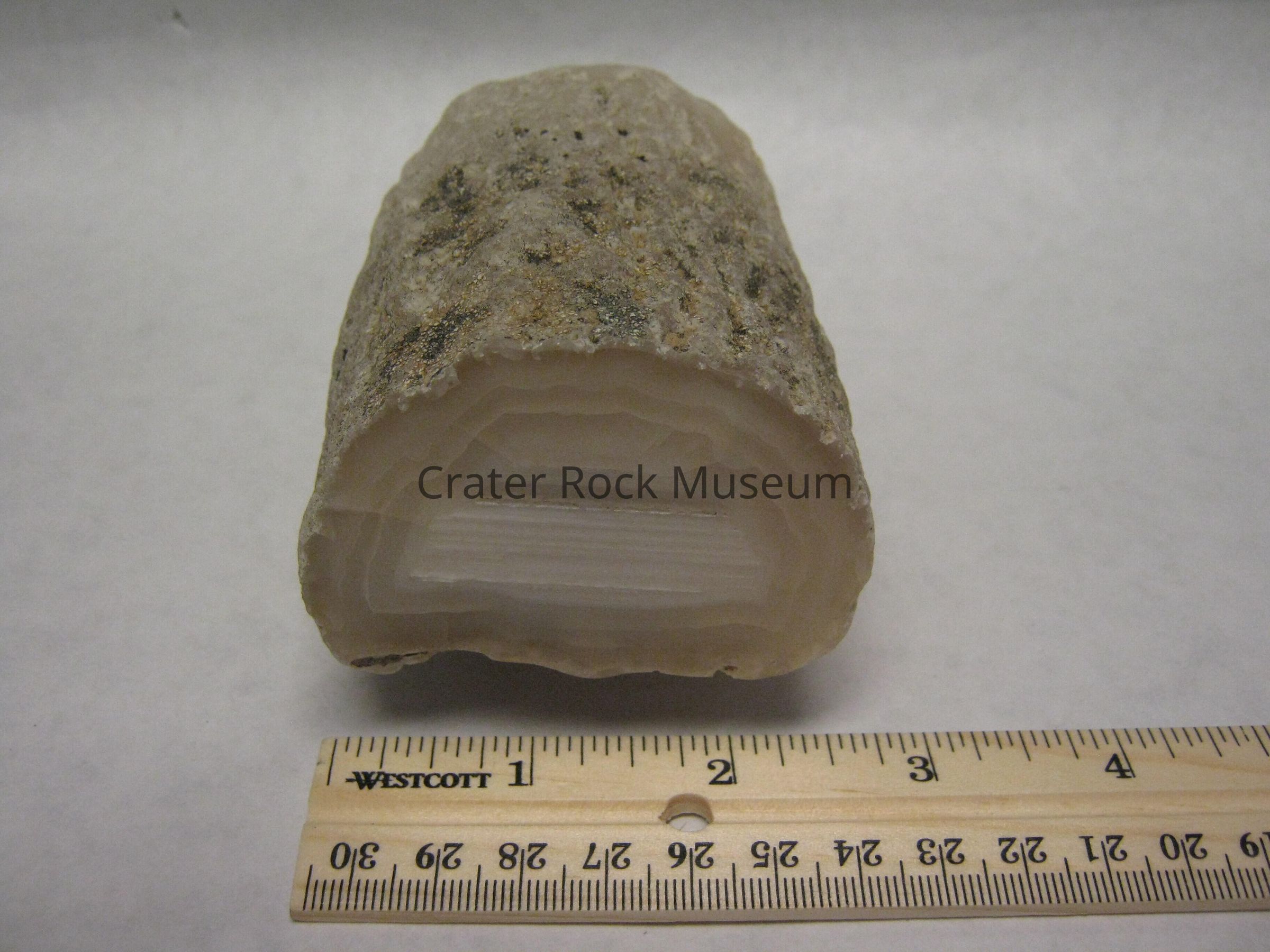 Occurrence: Like petrified wood, limb cast are created in much the same manner. Volcanic ash or silica-rich sediment buries a tree limb, the limb decays, leaving behind an open void. This void works as a mold that fills with amorphous silica that has percolated through the surrounding rock. Once microamorphous silica has filled the mold and the crystallization process to a (quartz)chalcedony or opal is complete, the result is a siliceous rock with the same exterior markings as the original limb.