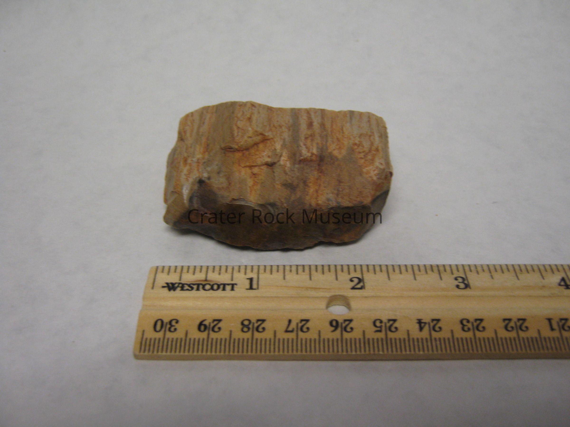 Occurrence: Silicified wood, which is the fossilization and opalization of organic woody matter by the deposition of SiO2 in a anaerobic environment to prevent decay. This means that the wood must somehow be buried in an oxygen free enviroment, possibly in the silt-laden river or the bottom of a lake or buried by volcanic ash or volcanic related mudflow. The organic material is then replaced by (SiO2) silica, other minerals determined its colors.