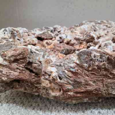 Description: A large limb cast of agate and jasper, very colorful: maroom, gold , black and white