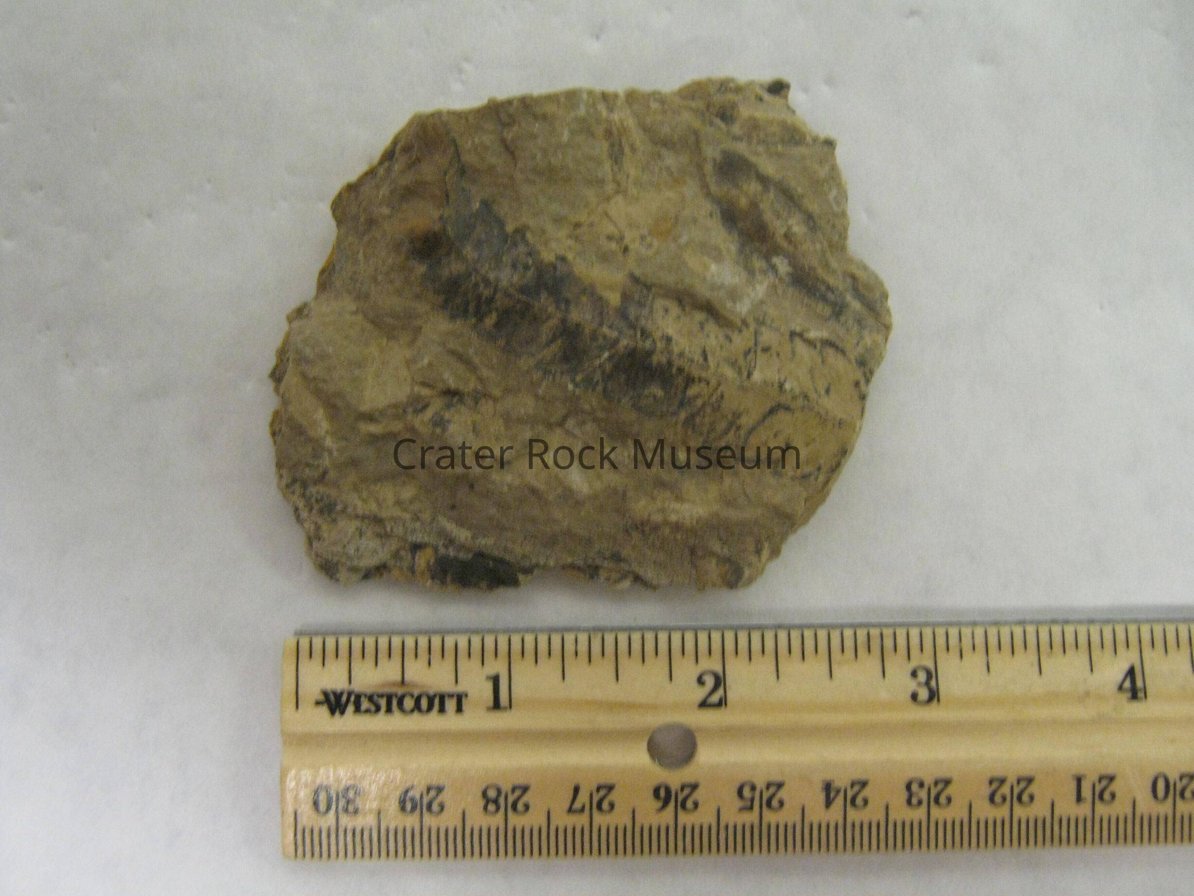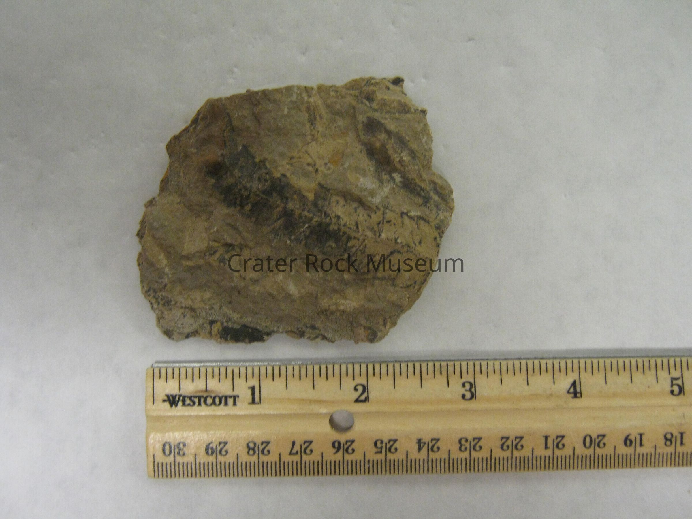 Leaf fossils in this case are carbon films that remain on the bedding surfaces of fine-grained sediments. Fossilization happened after the leaves sank to the bottom of a pond or lake and were later buried by additional fine-grained sediments. With burial, the leaves were compressed and the sediment surrounding them solidified. Eventually these fine-grained sediments became shale or mudstone. When all the volatile organic material in the living leaf was pressed out, only a thin carbon residue was left in the sediment, marking the outline and veins of the leaf.