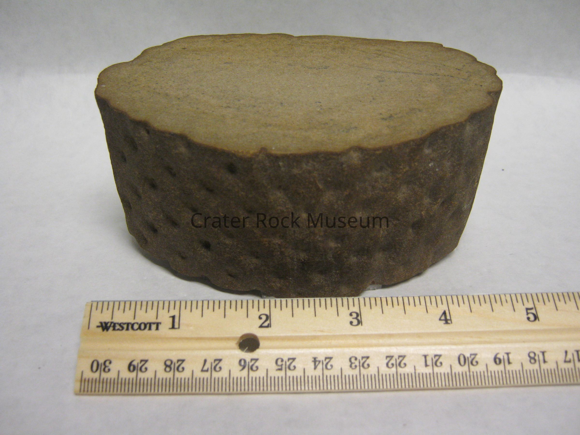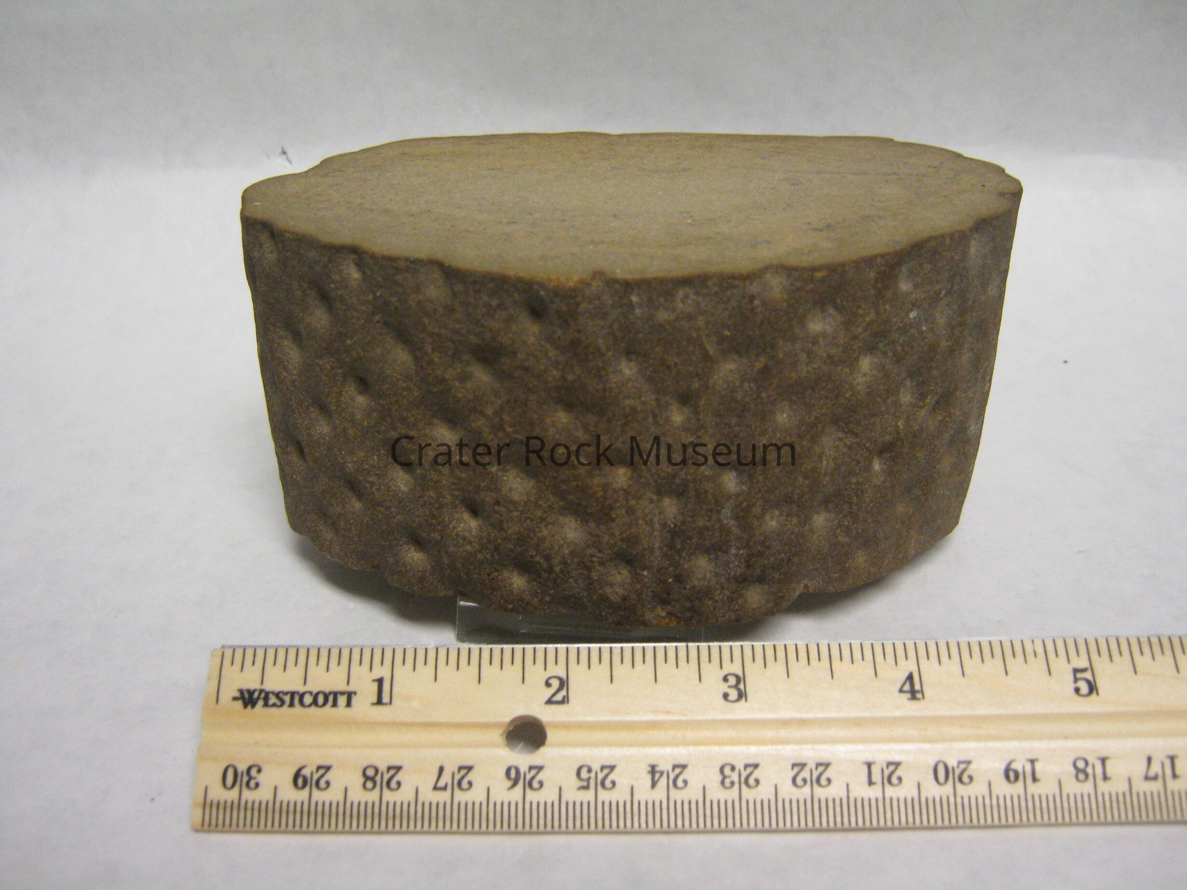 Description: A brown sand cast of a lepidodendron root (formly classified as "stigcearia" a fern genus for lepidodendron root)