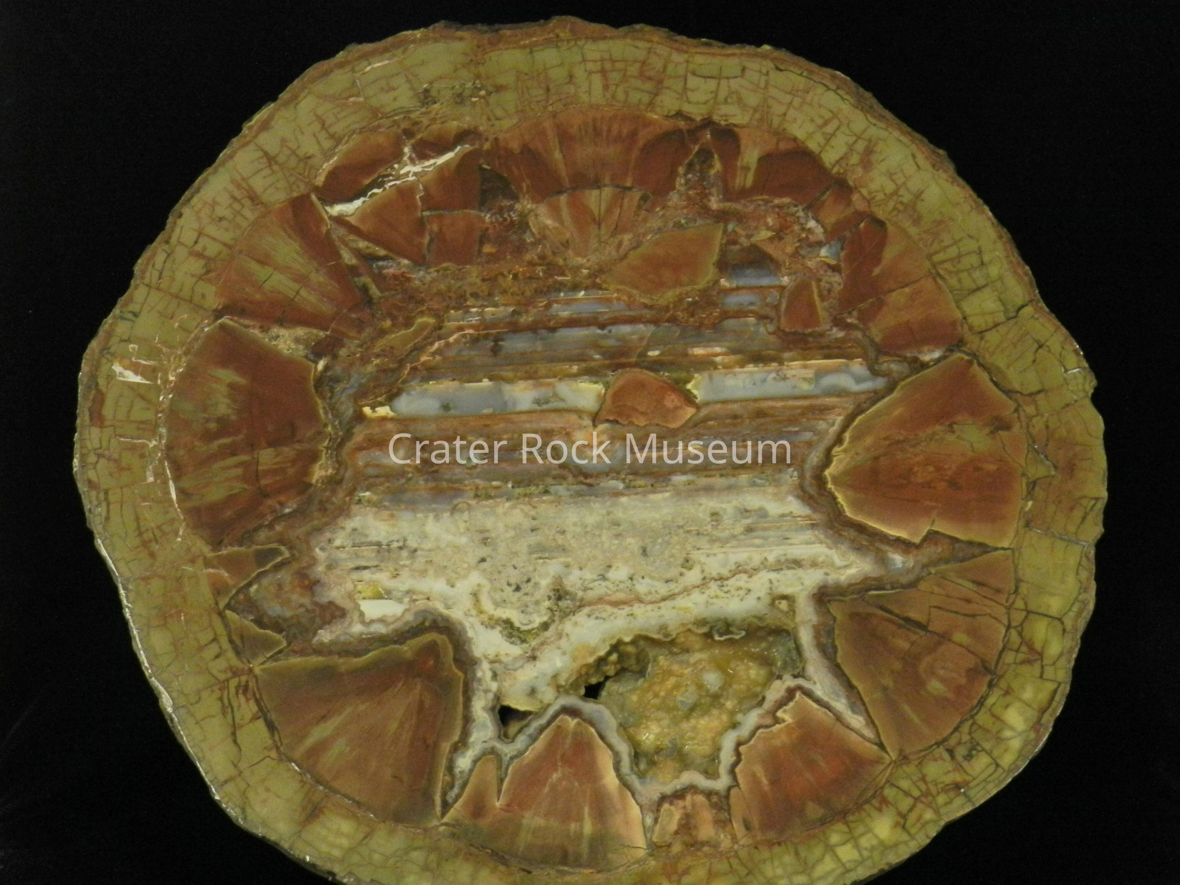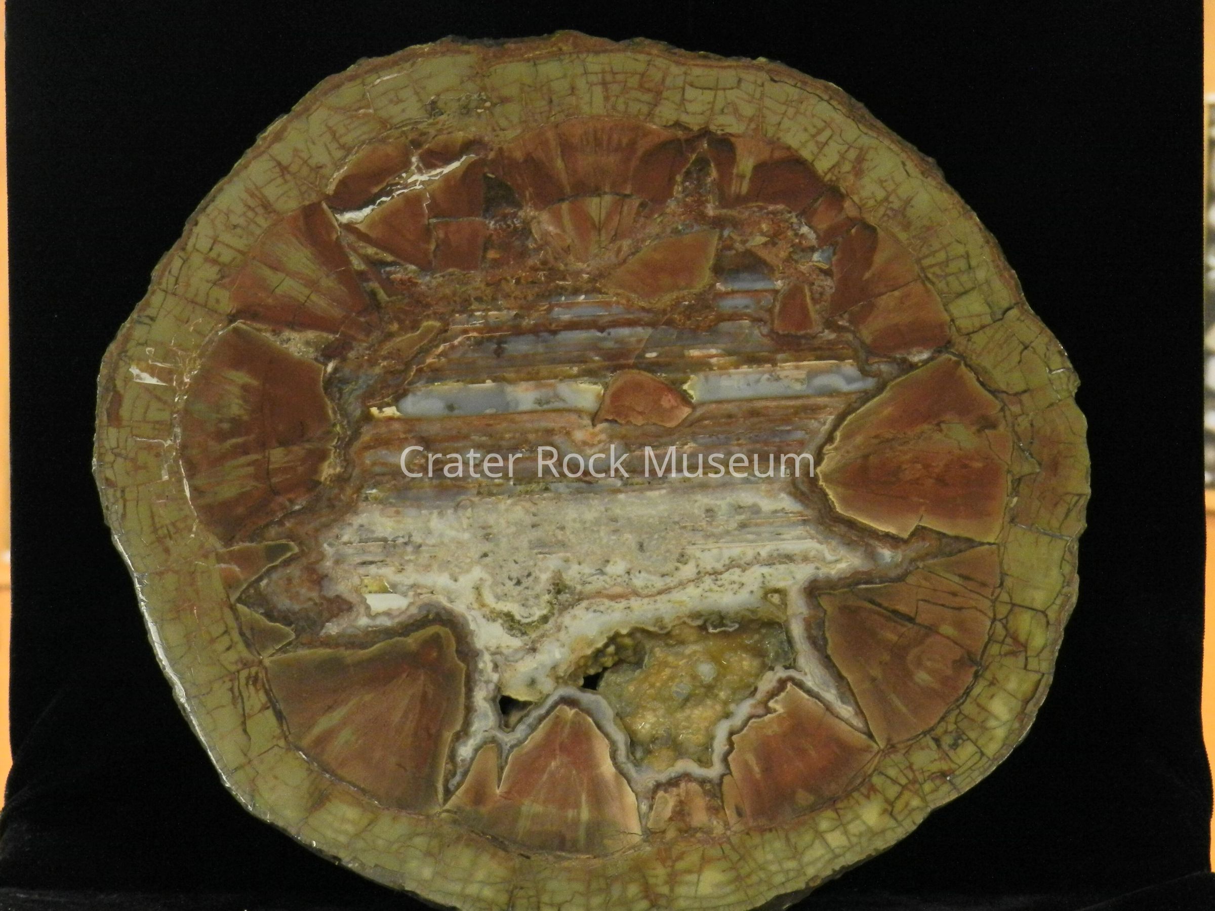 Occurrence: Thundereggs are only found in areas of previous volcanic activity . As silicic lavas poured out on the ground, the gasses made it frothy and bubbly . The lava cooled and over a period of millions of years, became buried . Water, which contains many minerals including silica, penetrated the gas pockets through a crack in the nodule. As water slowly dissipated, the solution deposited agate ( chalcedong SiO2 ) .