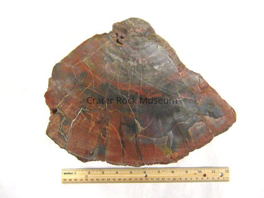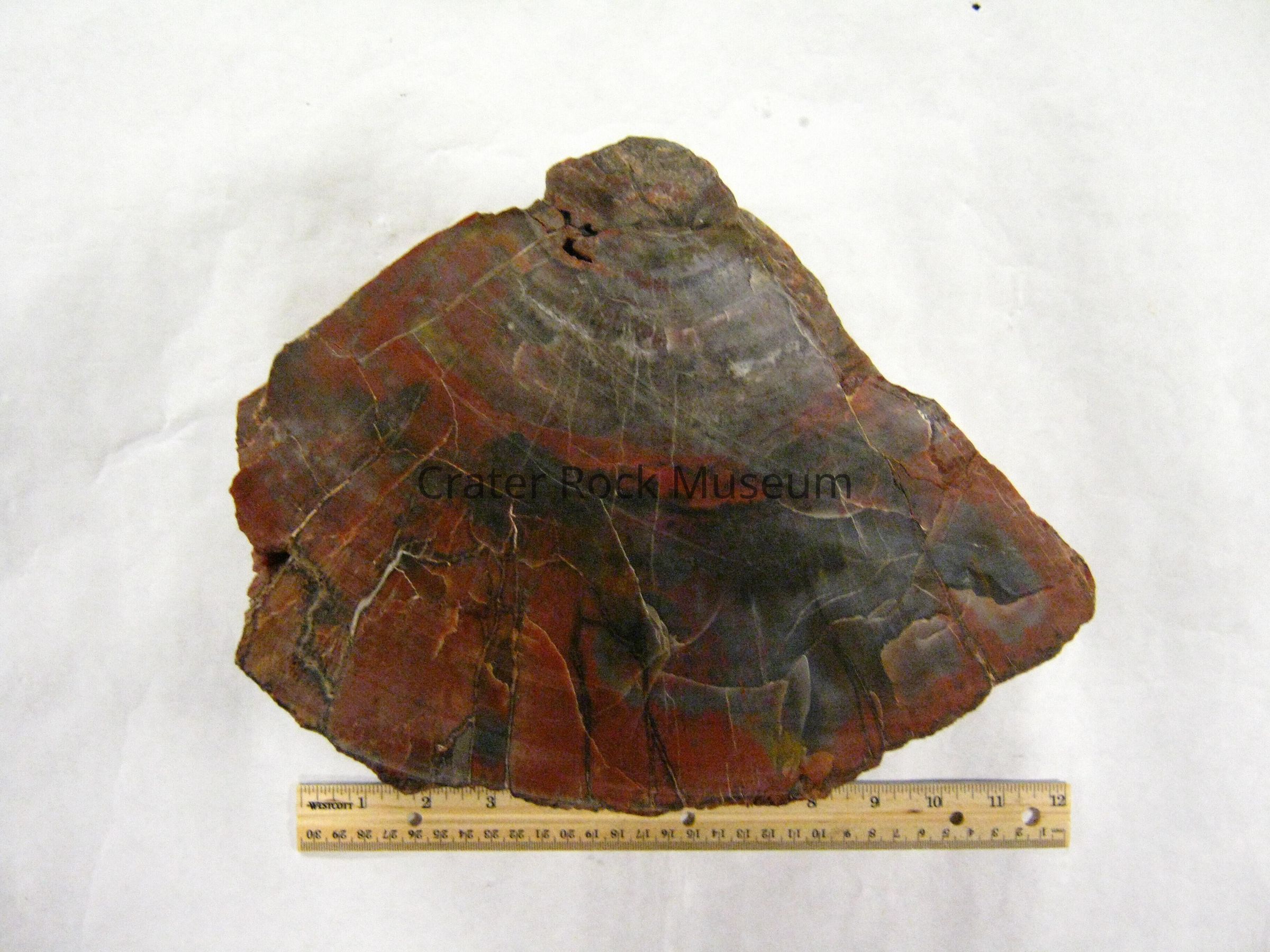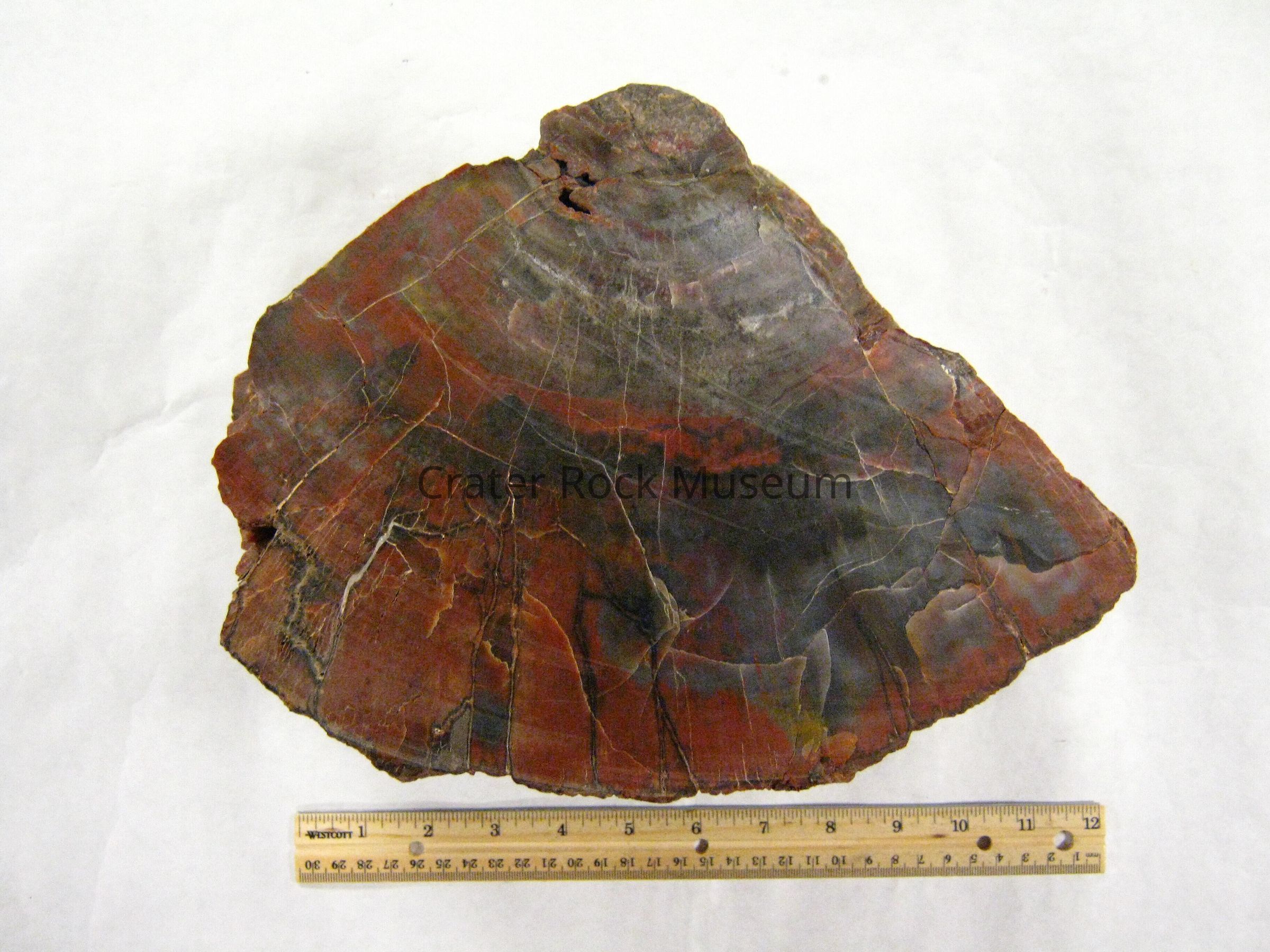 Occurrence: Silicified wood, which is the fossilization and/or opalization of organic woody matter by the deposition of SiO2 in a anaerobic environment to prevent decay. This means that the wood must somehow be buried in an oxygen free enviroment, possibly in the silt-laden river or the bottom of a lake or buried by volcanic ash or volcanic related mudflow. The organic material in the wood is then replaced by silica, other minerals determined the colors of the petrified wood.