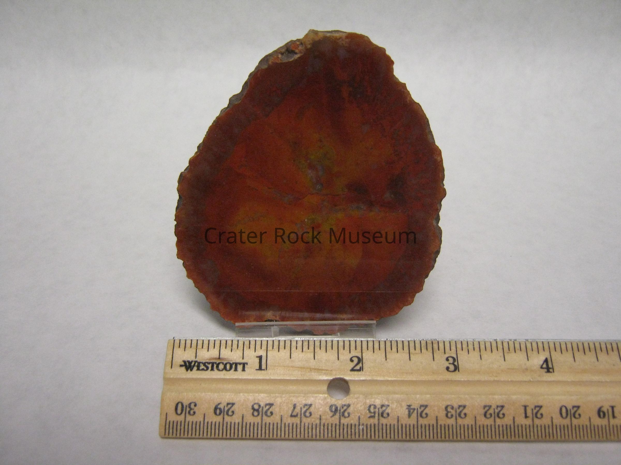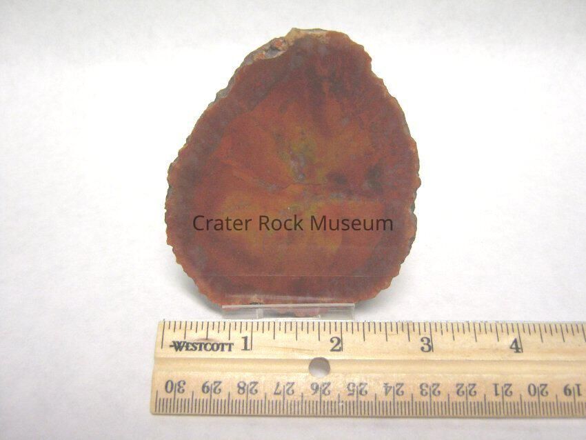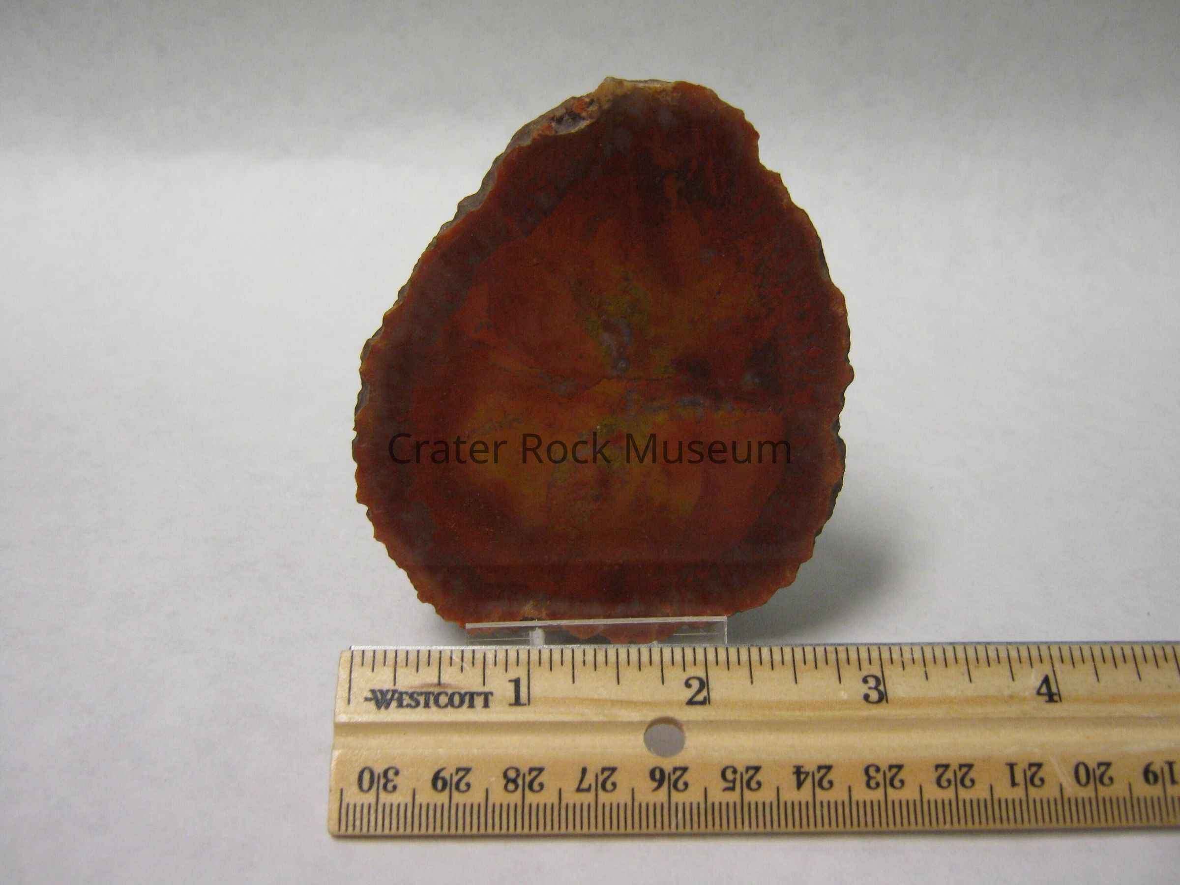 Description: Polished face shows colors of yellow, orange, rust and clearish-white, there are no growth rings are apparent.