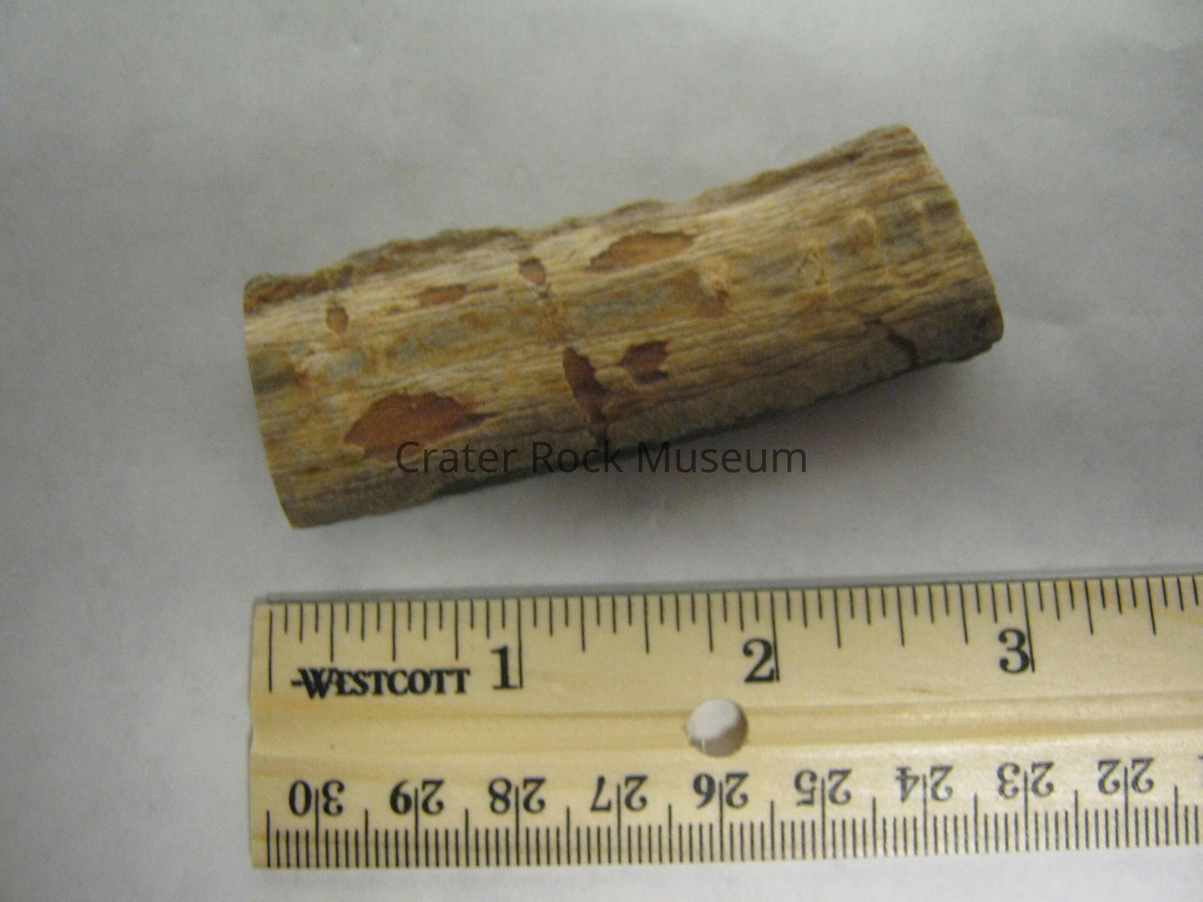 Description: A araucaria root, colored tan, pinkish-beige and red