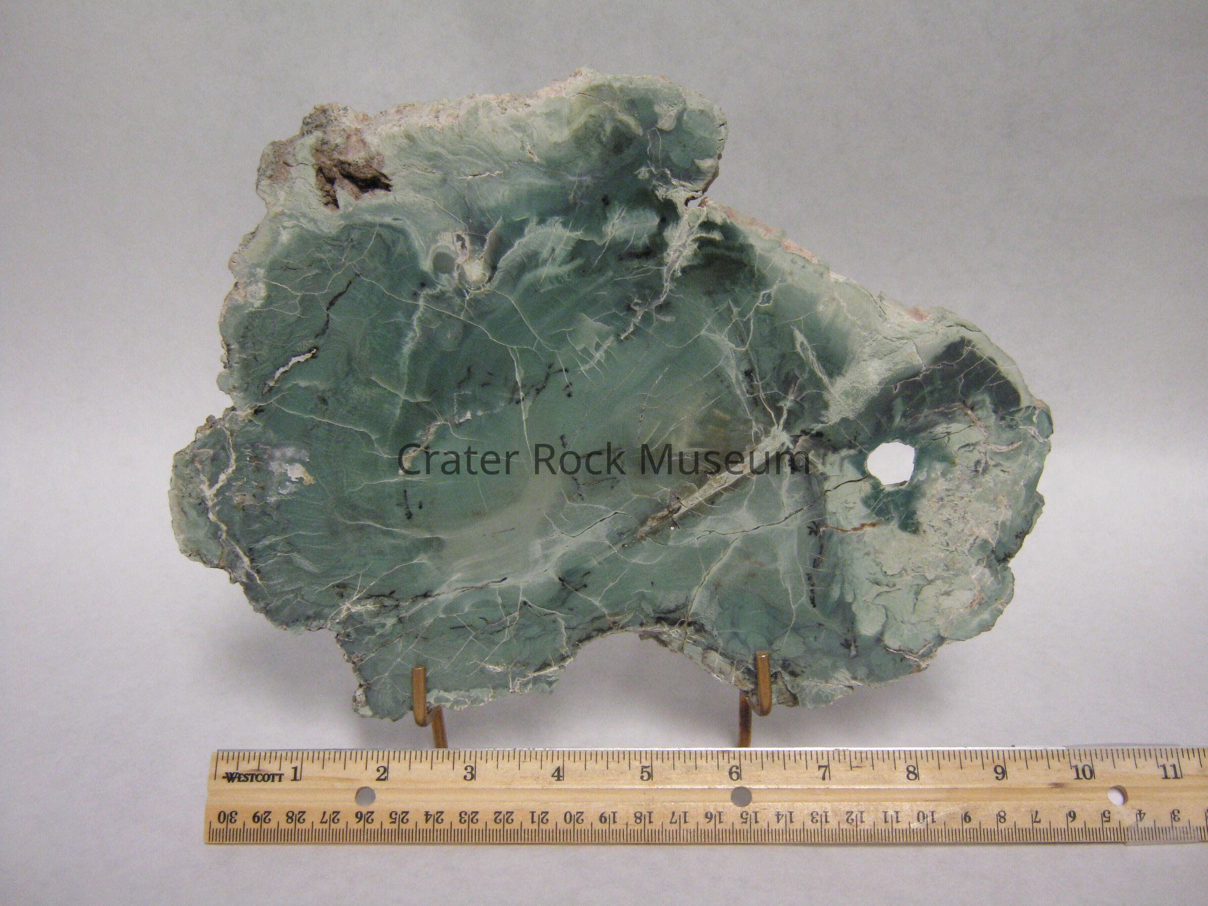 Description: Polished cut slab with colors white and green (green color from chromium)