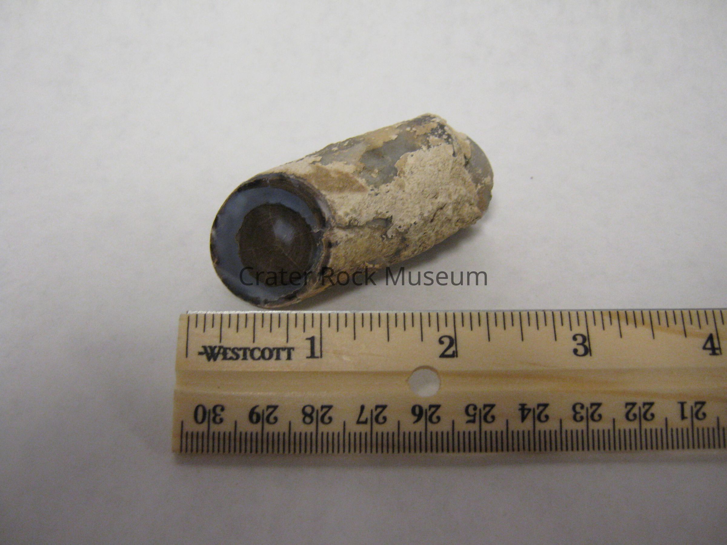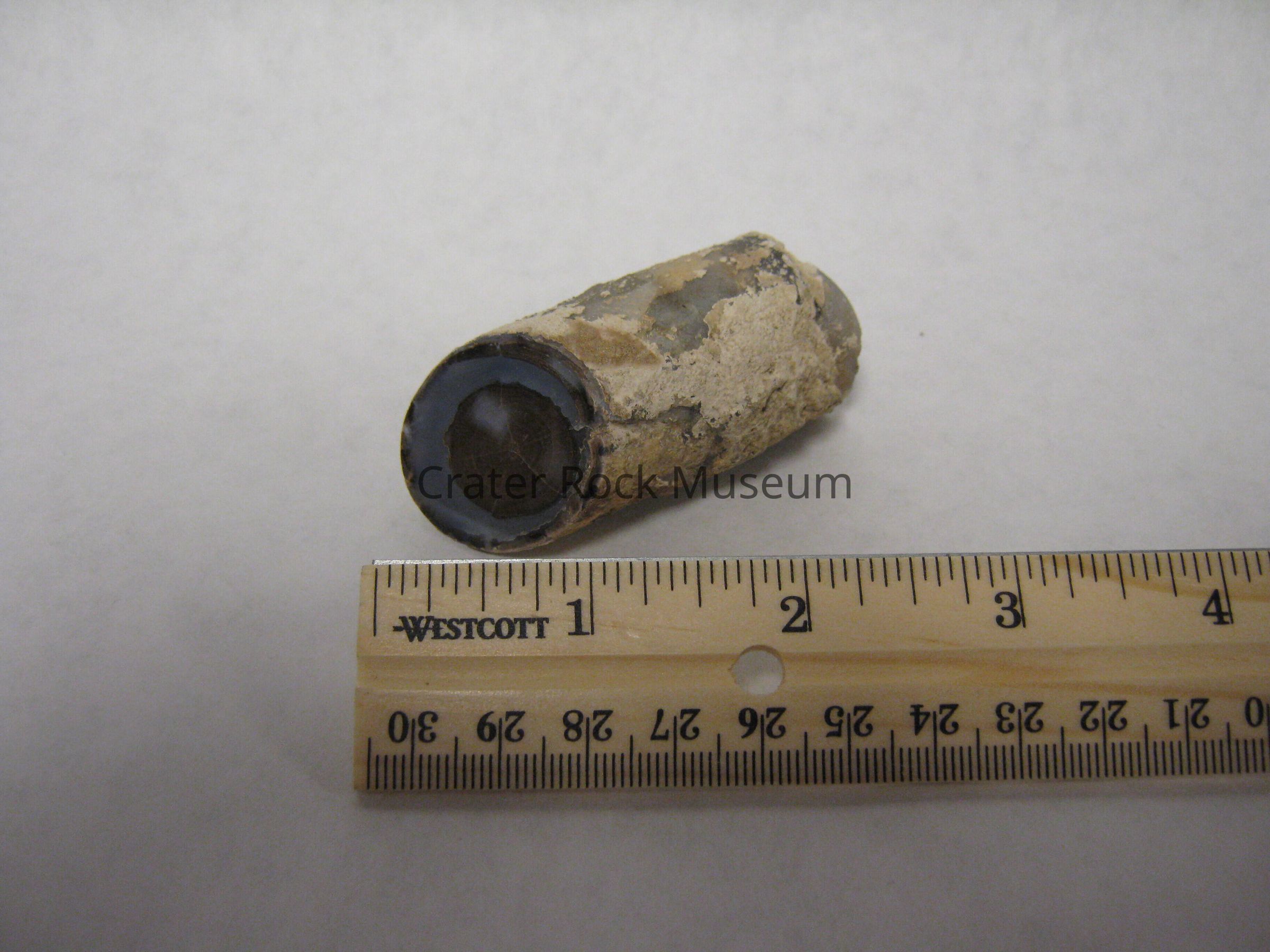 Description: (A) one of four pieces, a limb cast from the Green River Formation in Wyoming, colors grey, brown, black, beige and clear agate.
