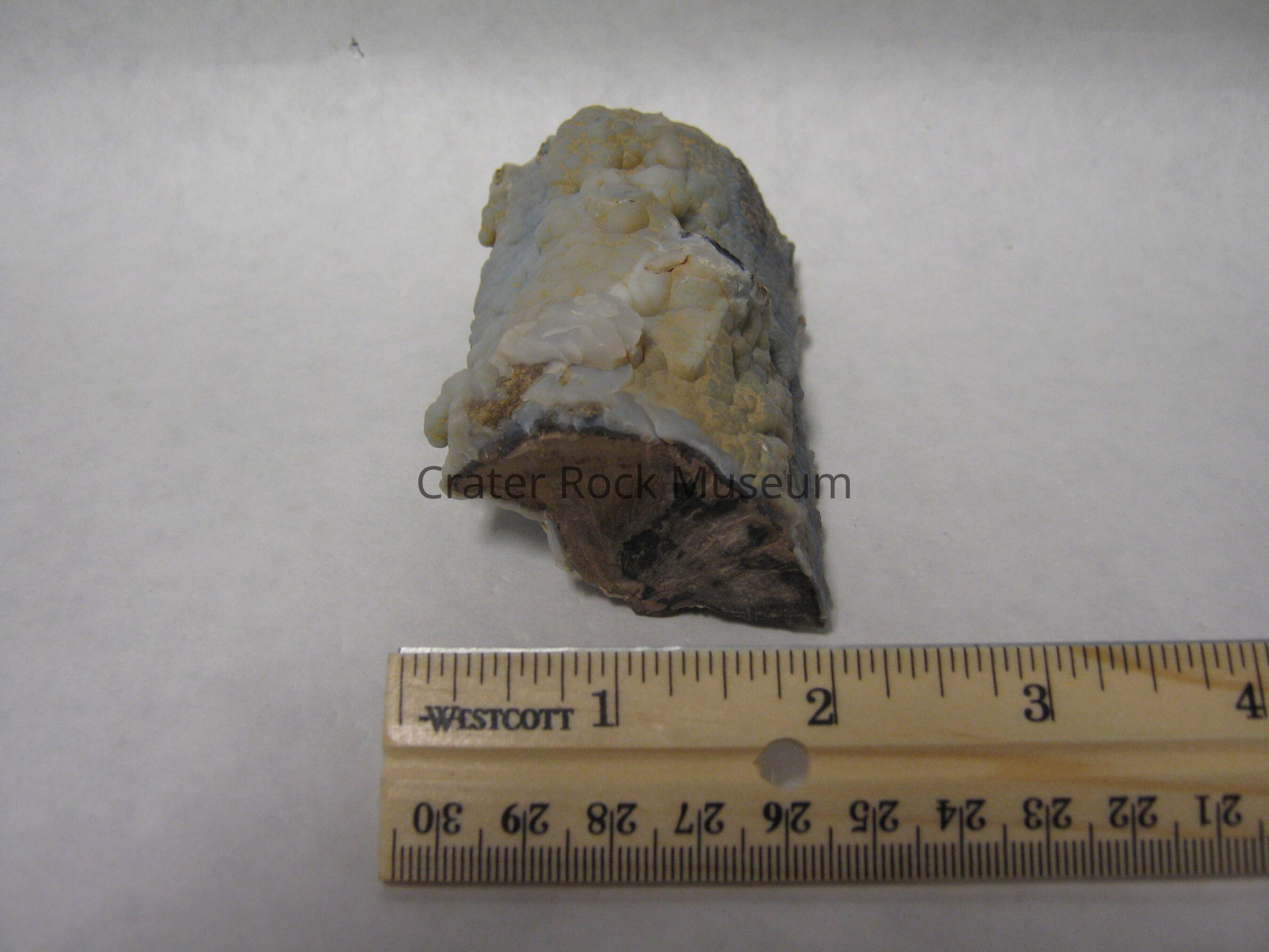 Occurrence: Silicified wood, which is the fossilization and opalization of organic woody matter by the deposition of SiO2 in a anaerobic environment to prevent decay. This means that the wood must somehow be buried in an oxygen free enviroment, possibly in the silt-laden river or the bottom of a lake or buried by volcanic ash or volcanic related mudflow. The organic material is then replaced by (SiO2) silica, other minerals determined its colors.