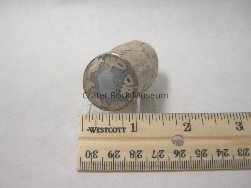 Description: This is one of four limbcast (A) from Delmars Collection: colored: outer is a chalky tanish-beige, inner cast shows a clear grey-blue agate along with some beige segments.