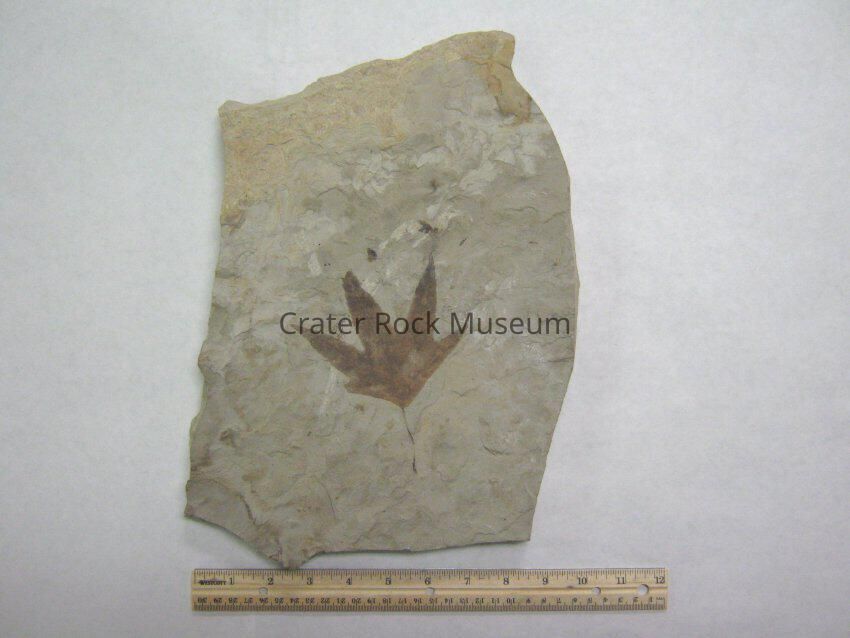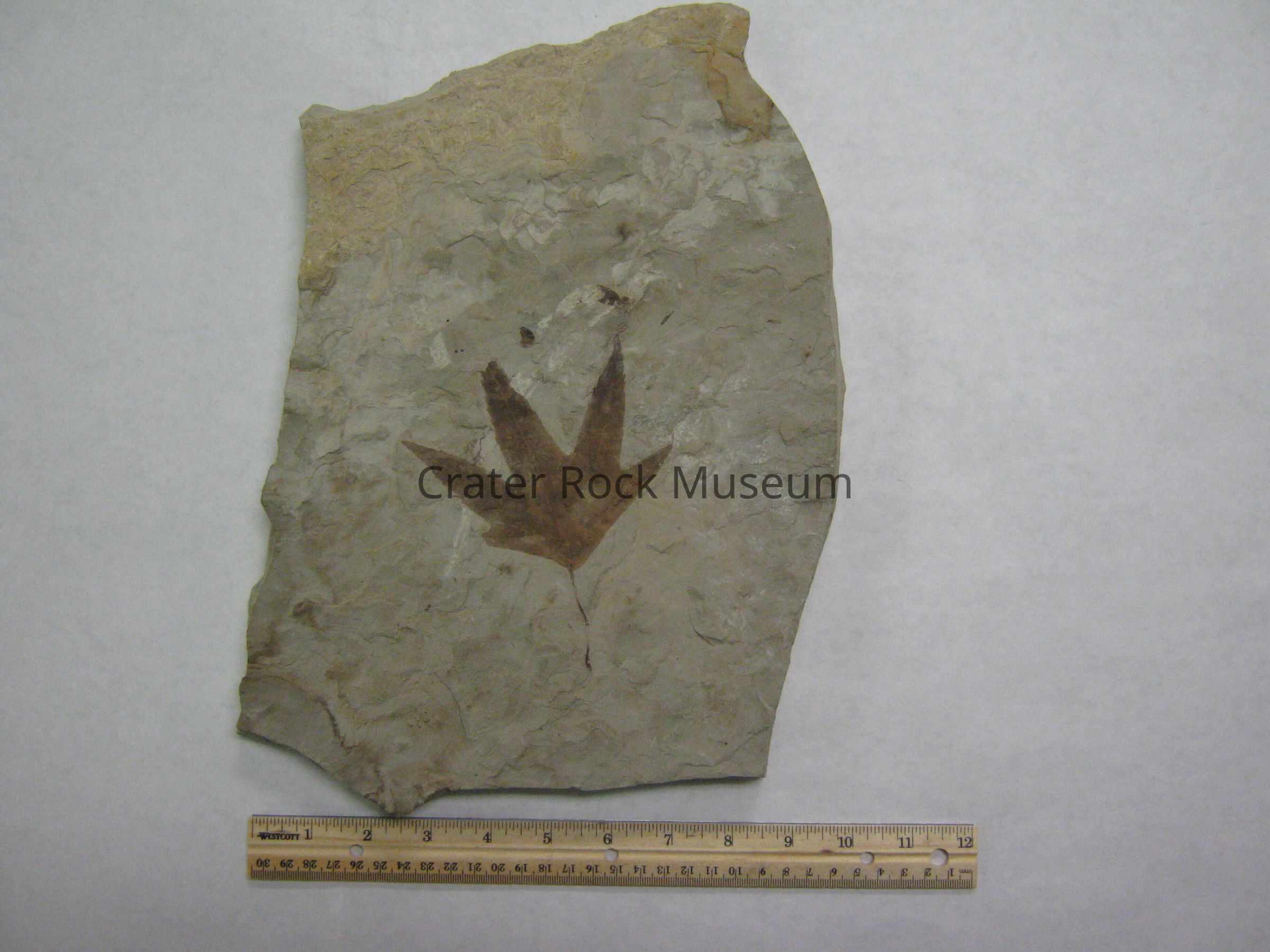 Leaf fossils in this case are carbon films that remain on the bedding surfaces of fine-grained sediments. Fossilization happened after the leaves sank to the bottom of a pond or lake and were later buried by additional fine-grained sediments. With burial, the leaves were compressed and the sediment surrounding them solidified. Eventually these fine-grained sediments became sandstone, shale or mudstone. When all the volatile organic material in the living leaf was pressed out, only a thin carbon residue was left in the sediment, marking the outline and veins of the leaf.