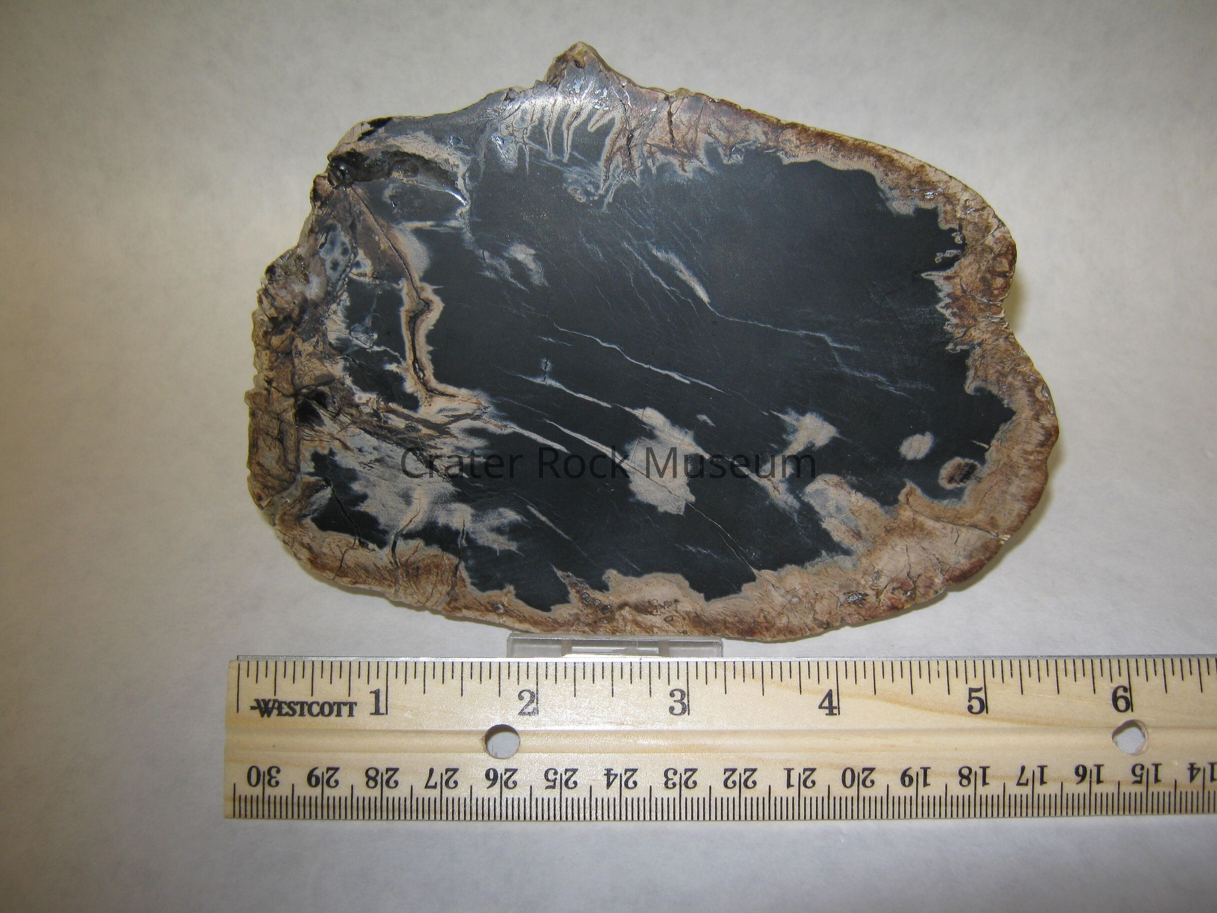 Occurrence: Silicified wood, which is the fossilization and/or opalization of organic woody matter by the deposition of SiO2 in a anaerobic environment to prevent decay. This means that the wood must somehow be buried in an oxygen free enviroment, possibly in the silt-laden river or the bottom of a lake or buried by volcanic ash or volcanic related mudflow. The organic material in the wood is then replaced by silica, other minerals determined the colors of the petrified wood.