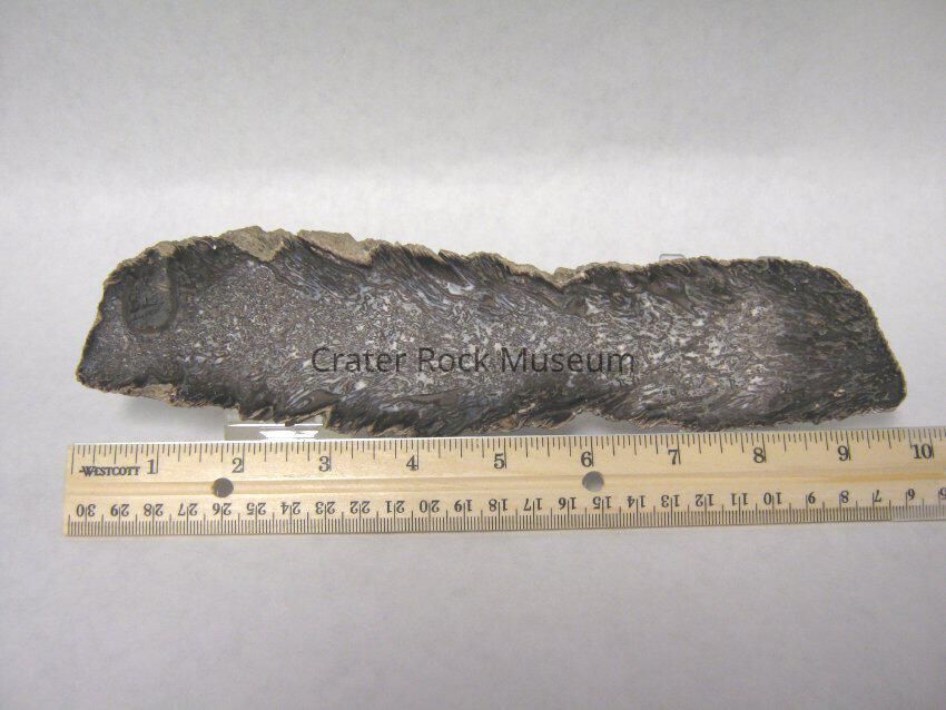 Occurrence: Silicified wood, which is the fossilization and opalization of organic woody matter by the deposition of SiO2 in a anaerobic environment to prevent decay. This means that the wood must somehow be buried in an oxygen free enviroment, possibly in the silt-laden river or the bottom of a lake or buried by volcanic ash or related volcanic mudflow. The organic material in the wood is then replaced by silica (SiO2), other minerals determined its colors.