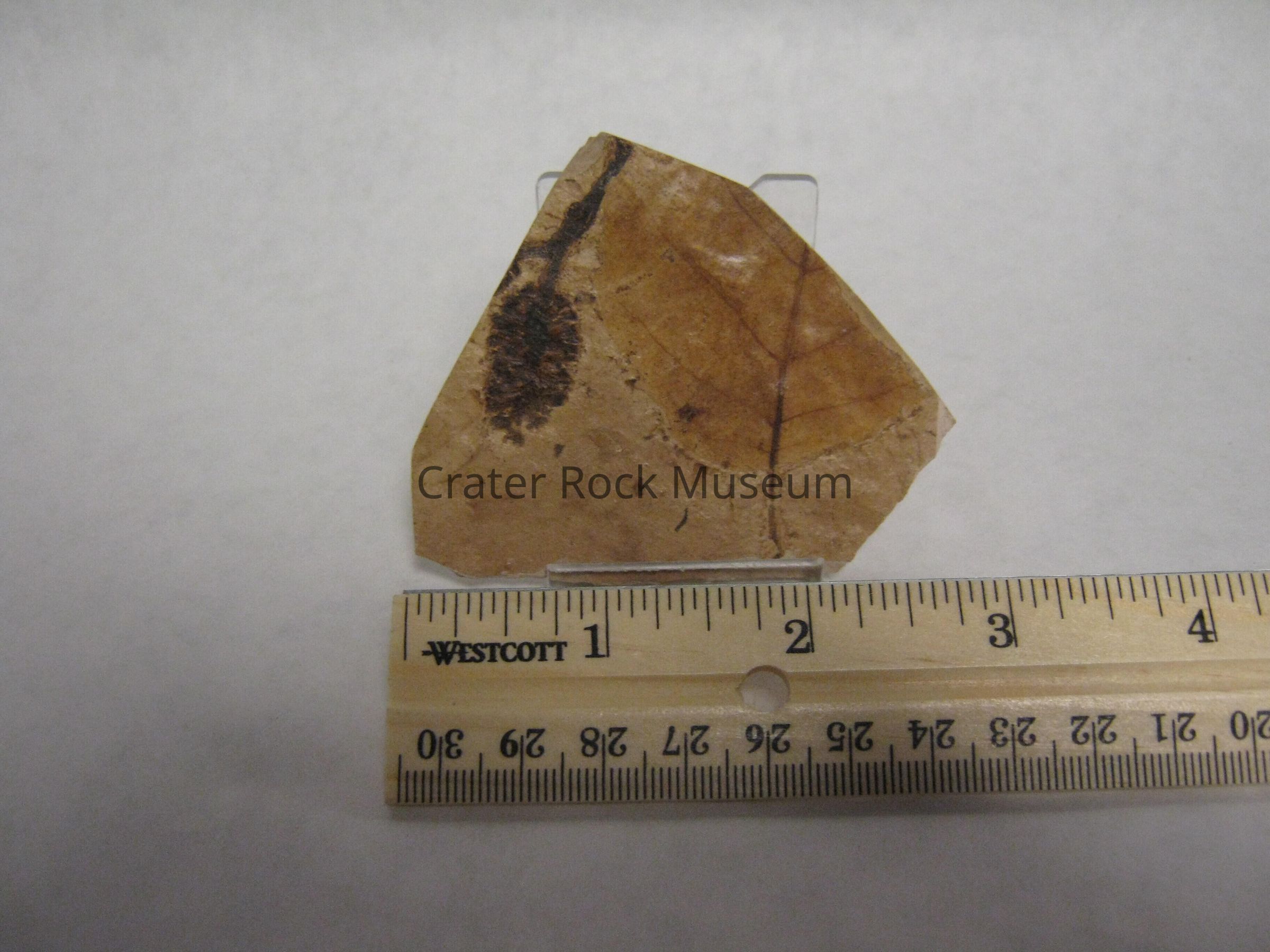 Leaf fossils in this case are carbon films that remain on the bedding surfaces of fine-grained sediments. Fossilization happened after the leaves sank to the bottom of a pond or lake and were later buried by additional fine-grained sediments. With burial, the leaves were compressed and the sediment surrounding them solidified. Eventually these fine-grained sediments became sandstone, shale or mudstone. When all the volatile organic material in the living leaf was pressed out, only a thin carbon residue was left in the sediment, marking the outline and veins of the leaf.