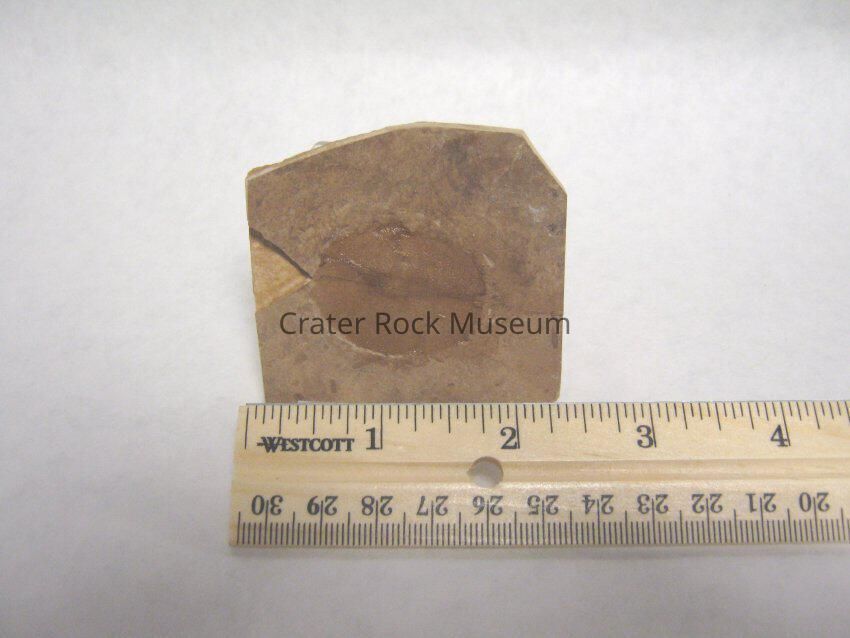 This imprint was left when a leaf pressed into soft sediment, and with the sediment surface deforming into the shape of the leaf. Fossilization happened after the leaves sank to the bottom of a pond or lake and were later buried by additional fine-grained sediments. Though the leaf completely rotted away, additional sediments and mineral filled the gap left behind, preserving the imprint. Eventually these fine-grained sediments became sandstone, shale or mudstone.