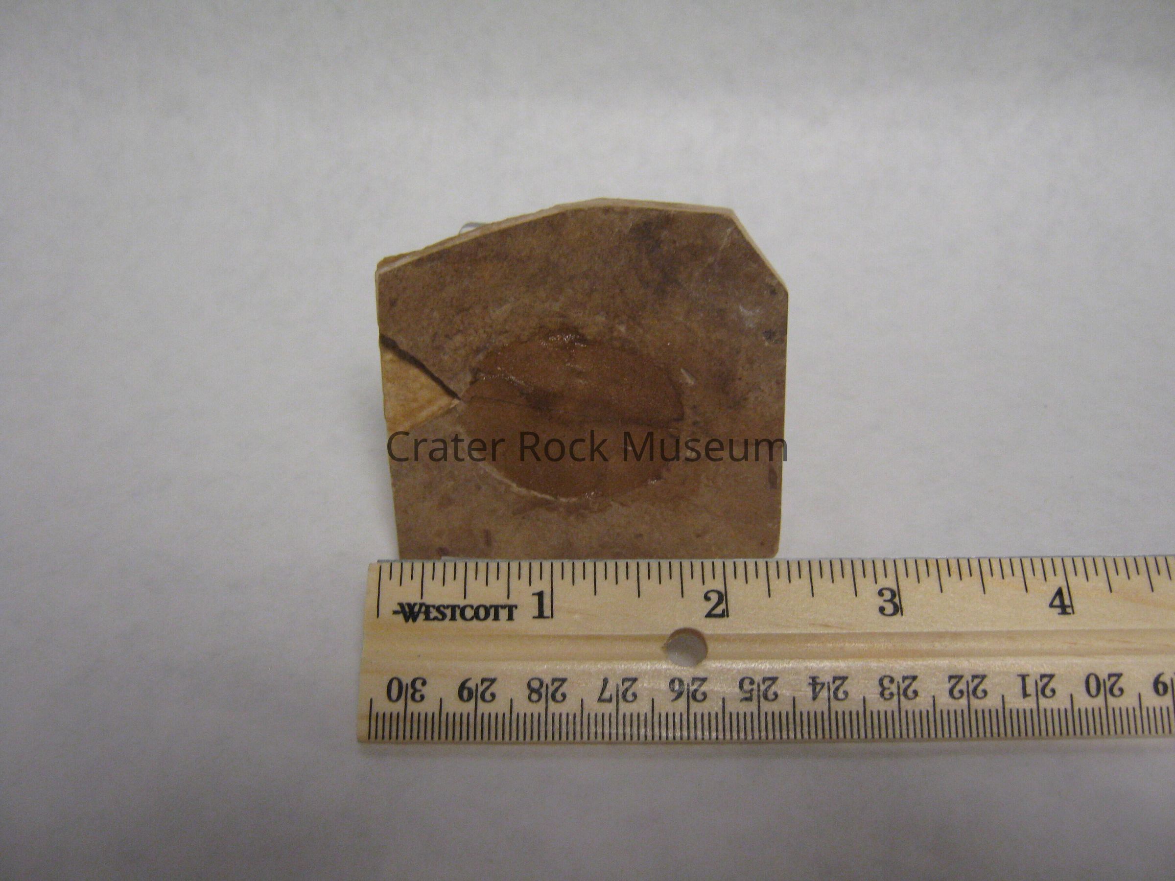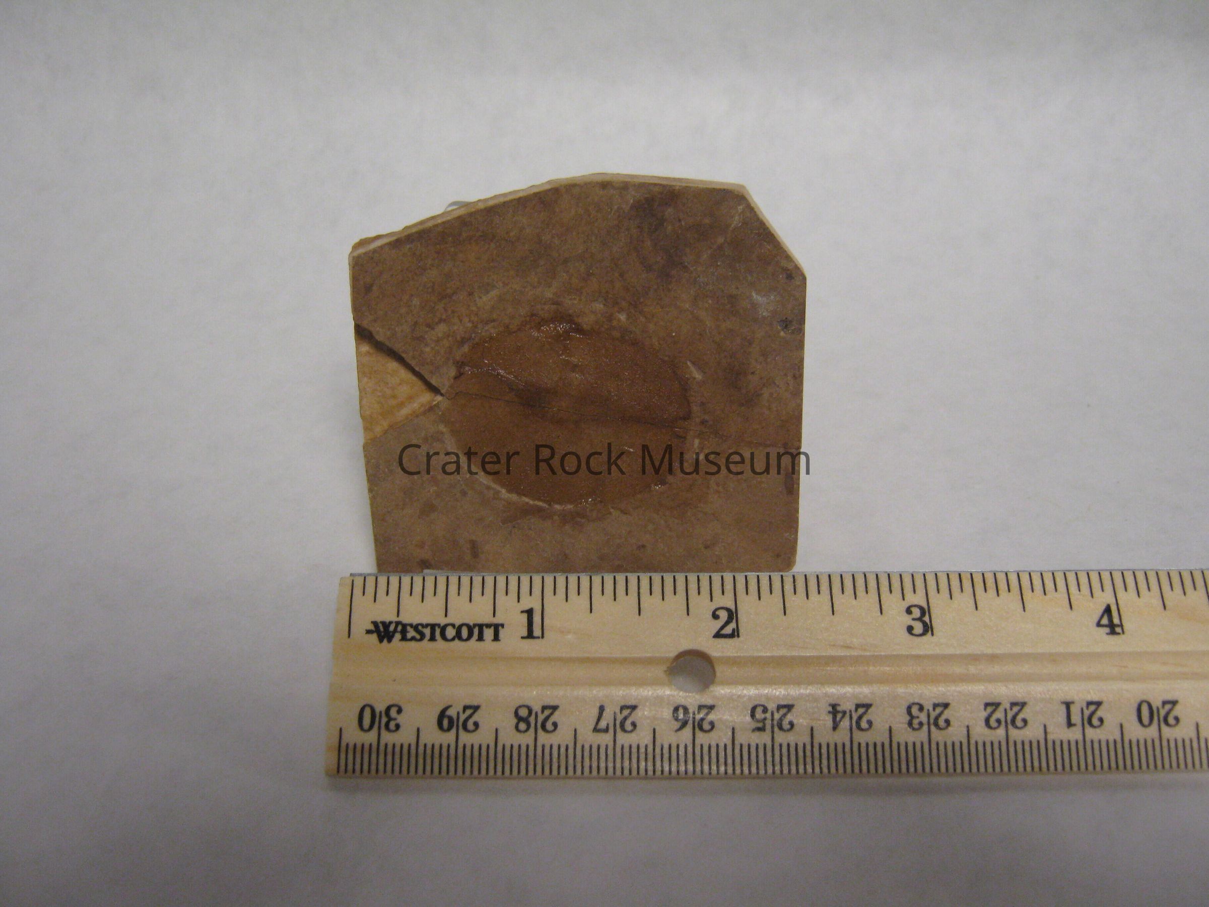 1.5" long, basswood-like, leaf seed imprint on a beige sandstone.