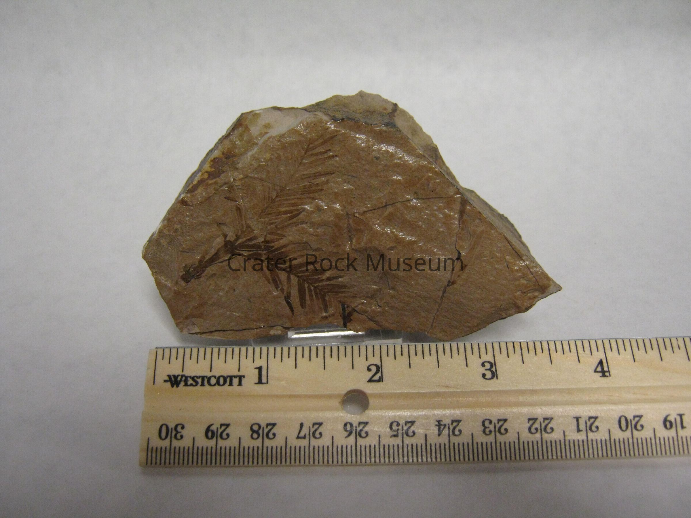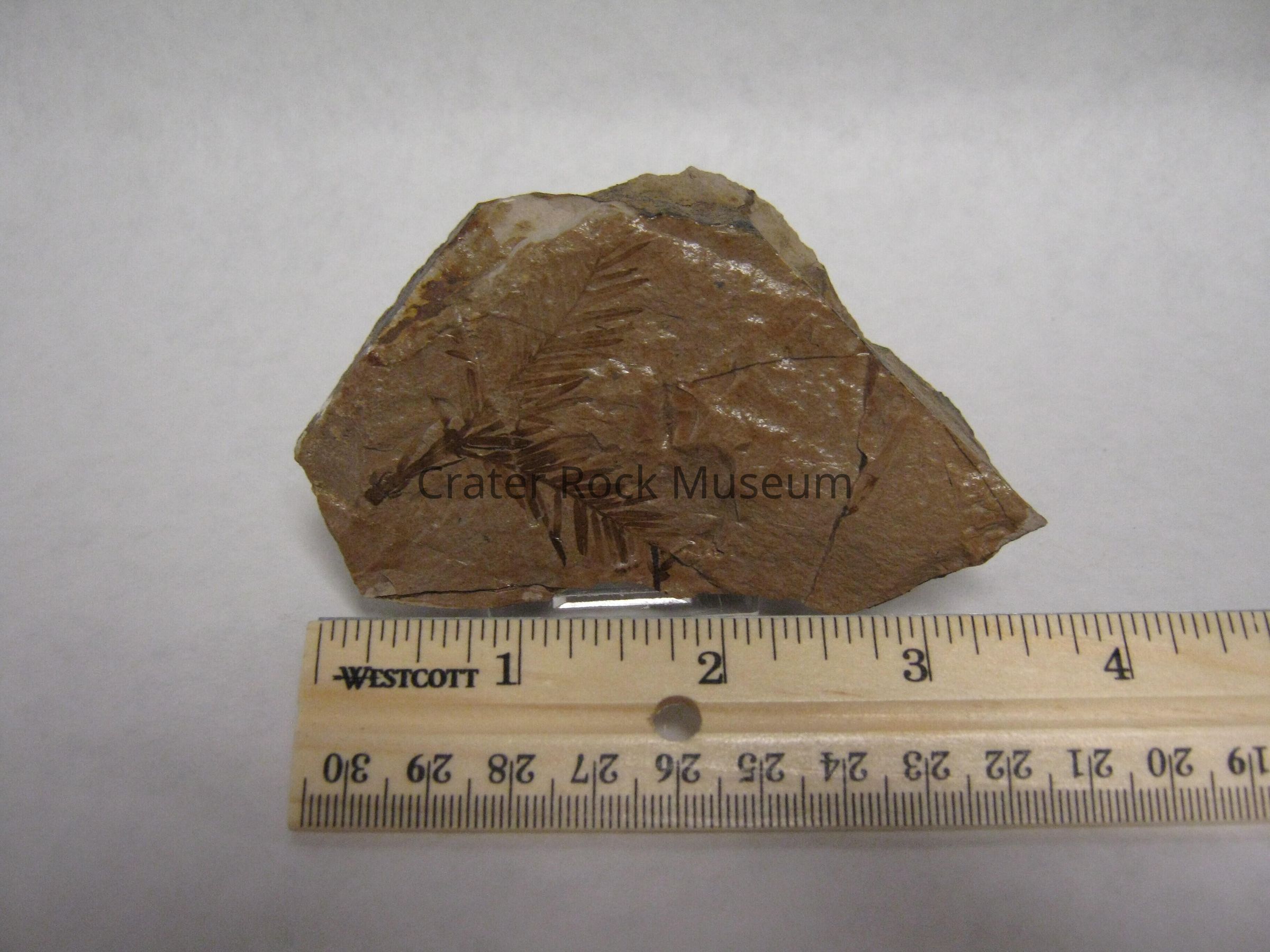 Variety: Leaf fossils in this case are carbon films that remain on the bedding surfaces of fine-grained sediments. Fossilization happened after the leaves sank to the bottom of a pond or lake and were later buried by additional fine-grained sediments. With burial, the leaves were compressed and the sediment surrounding them solidified. Eventually these fine-grained sediments became sandstone, shale or mudstone. When all the volatile organic material in the living leaf was pressed out, only a thin carbon residue was left in the sediment, marking the outline and veins of the leaf.Collection