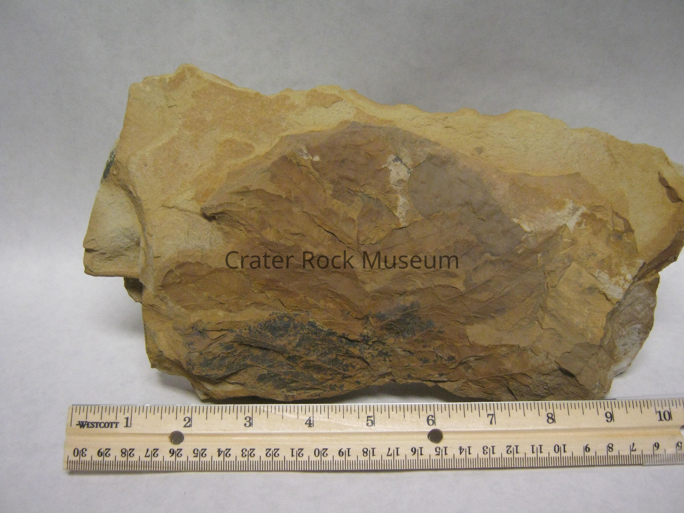 I don't know how the leaf can be said to be wider than the rock without some improper estimation going on, but several of the specimens from Tyler Corno have dimensions for the fossil listed as wider than the matrix rock they're found on. Most likely, the original cataloger was taking eyeball measurements, and Ms. Boyd's are more accurate.Location