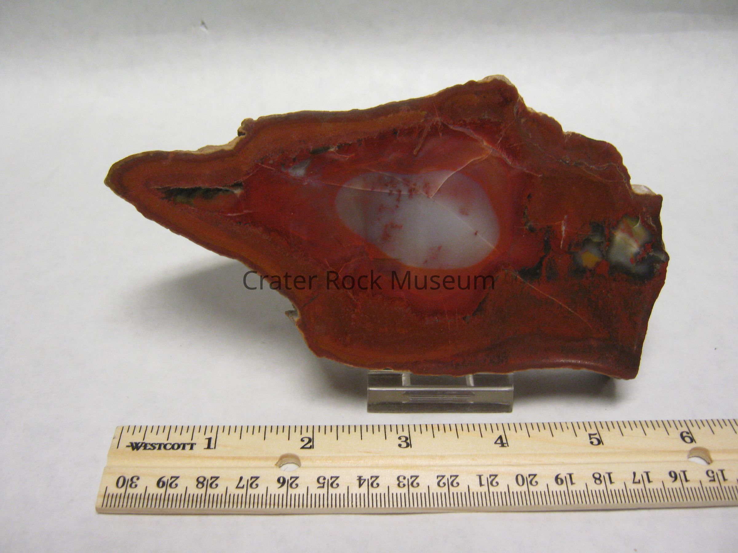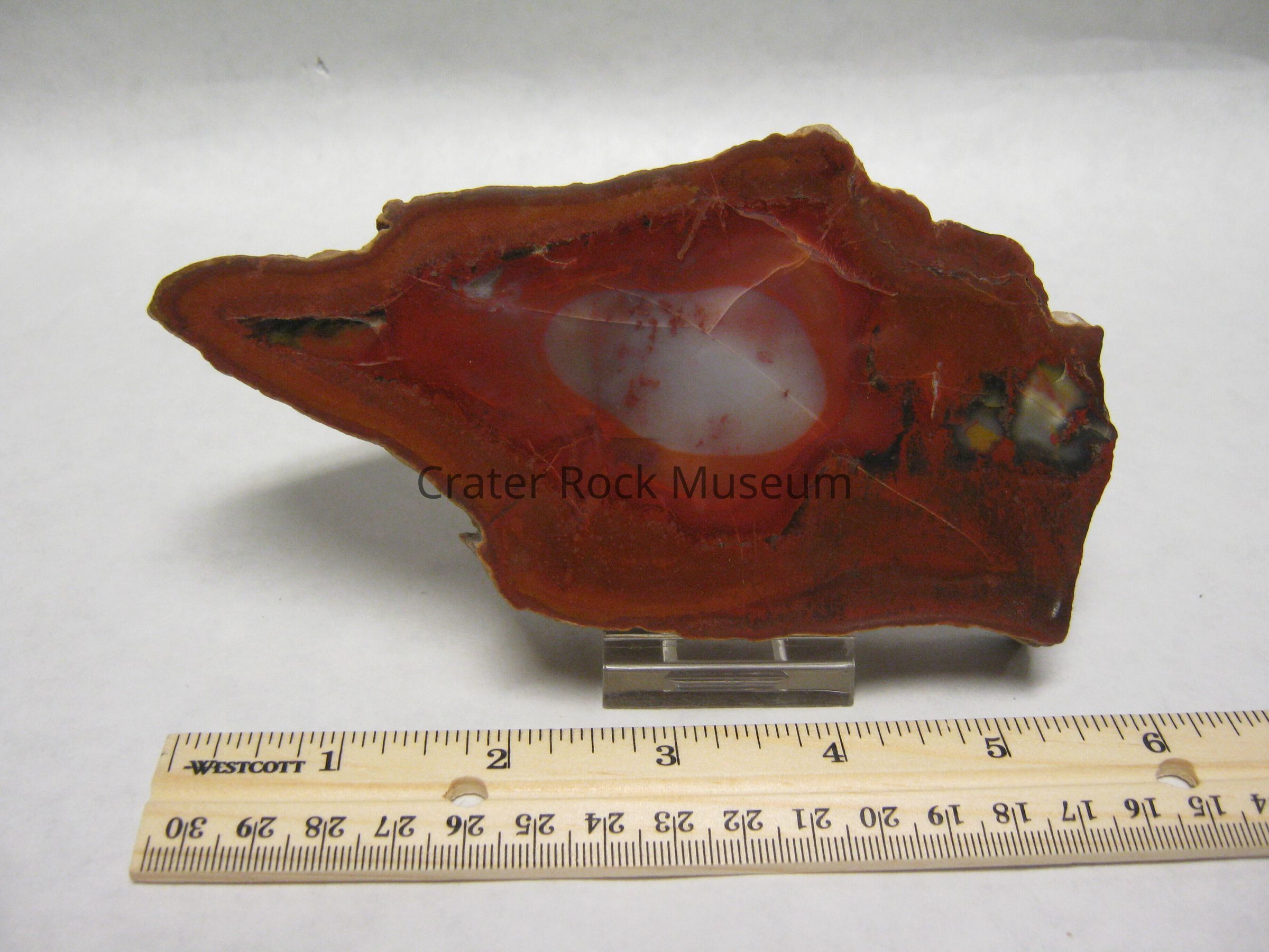 Variety: "Roxy Ann Wood " is composed of a mélange of petrified wood, chalcedony and jasper, with in fillings of volcanic ash and microcrystalline quartz. The specimens show woody texture on their outer surfaces, they are not true limb casts. According to geologist Marty Norris, the conditions necessary formation of limb casts were present, but these specimens were shattered, splintered and then began to decay before their transformation into petrified wood, and so they are "wood cast."