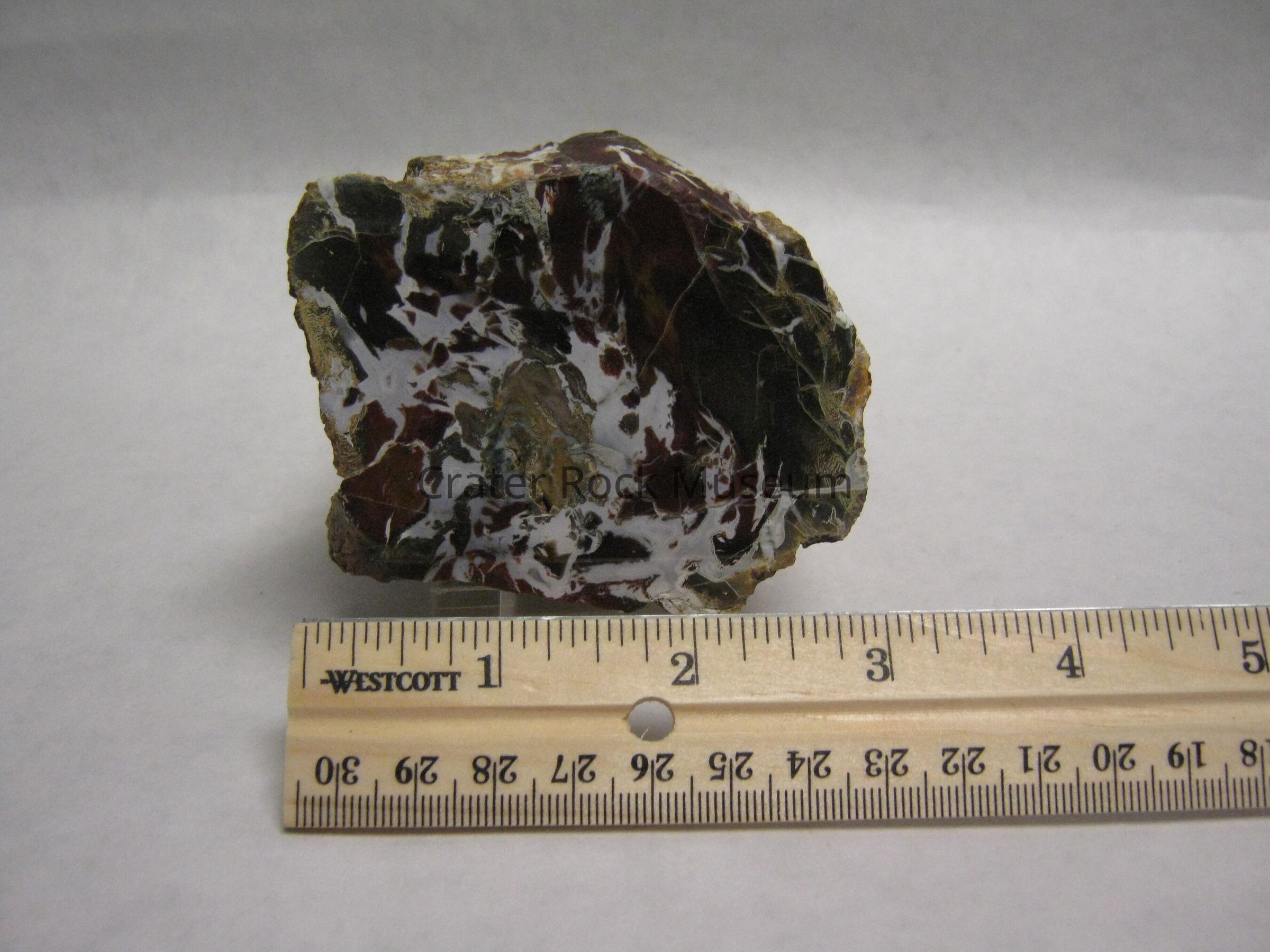 Variety: "Roxy Ann Wood " is composed of a mélange of petrified wood, chalcedony and jasper, with in fillings of volcanic ash and microcrystalline quartz. The specimens show woody texture on their outer surfaces, they are not true limb casts. According to geologist Marty Norris, the conditions necessary formation of limb casts were present, but these specimens were shattered, splintered and then began to decay before their transformation into petrified wood, and so they are "wood cast."