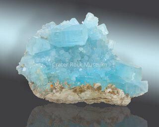 This specimen has several large blue crystal surround by smaller crystal in a muscovite matrix. Estimated Value: $10,000