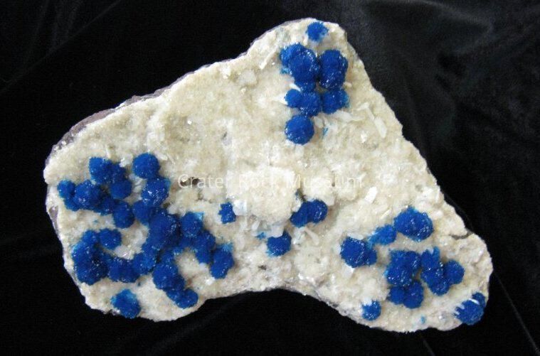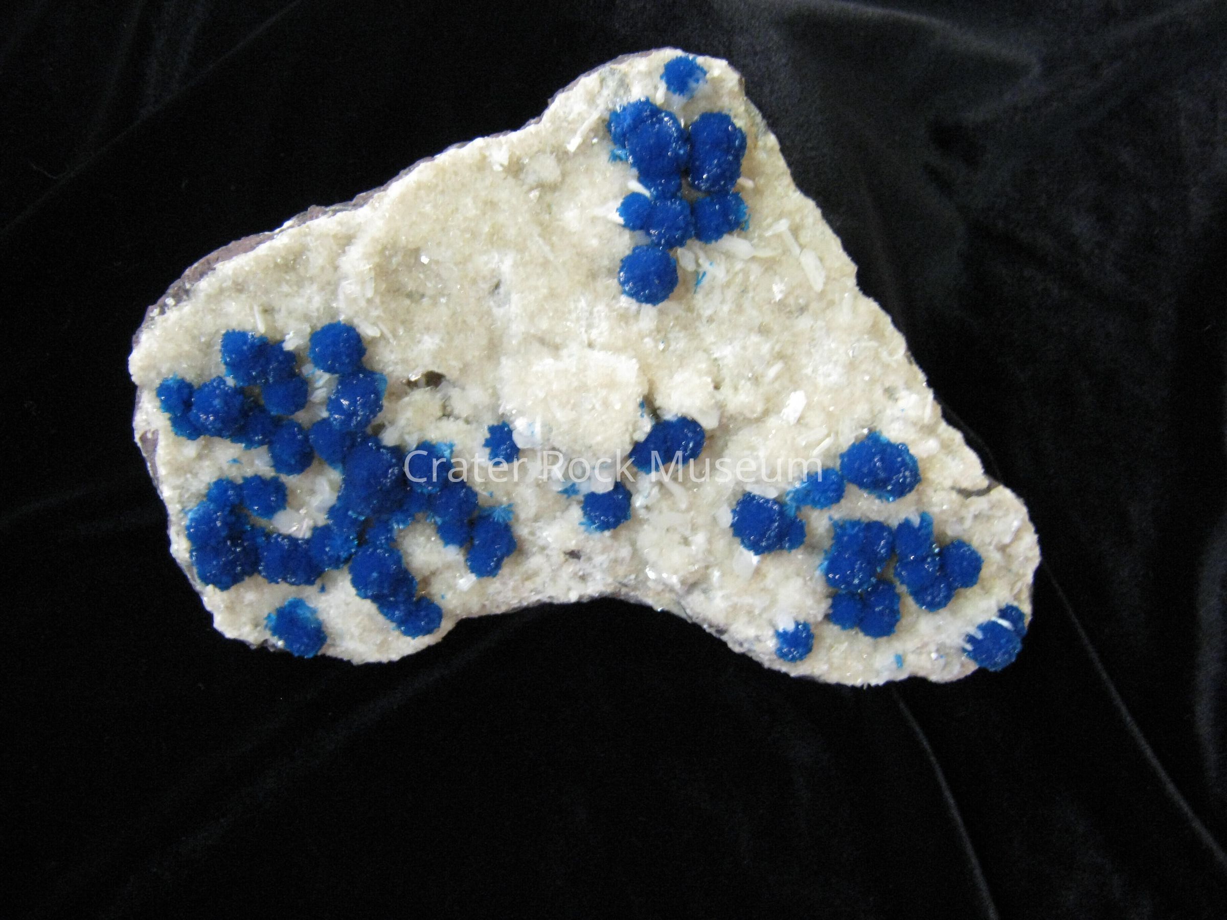 Description: Bluish teal with white fuzzy crystals around them.