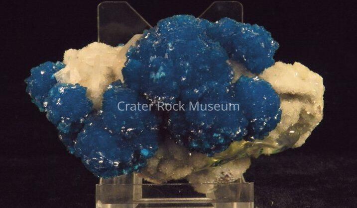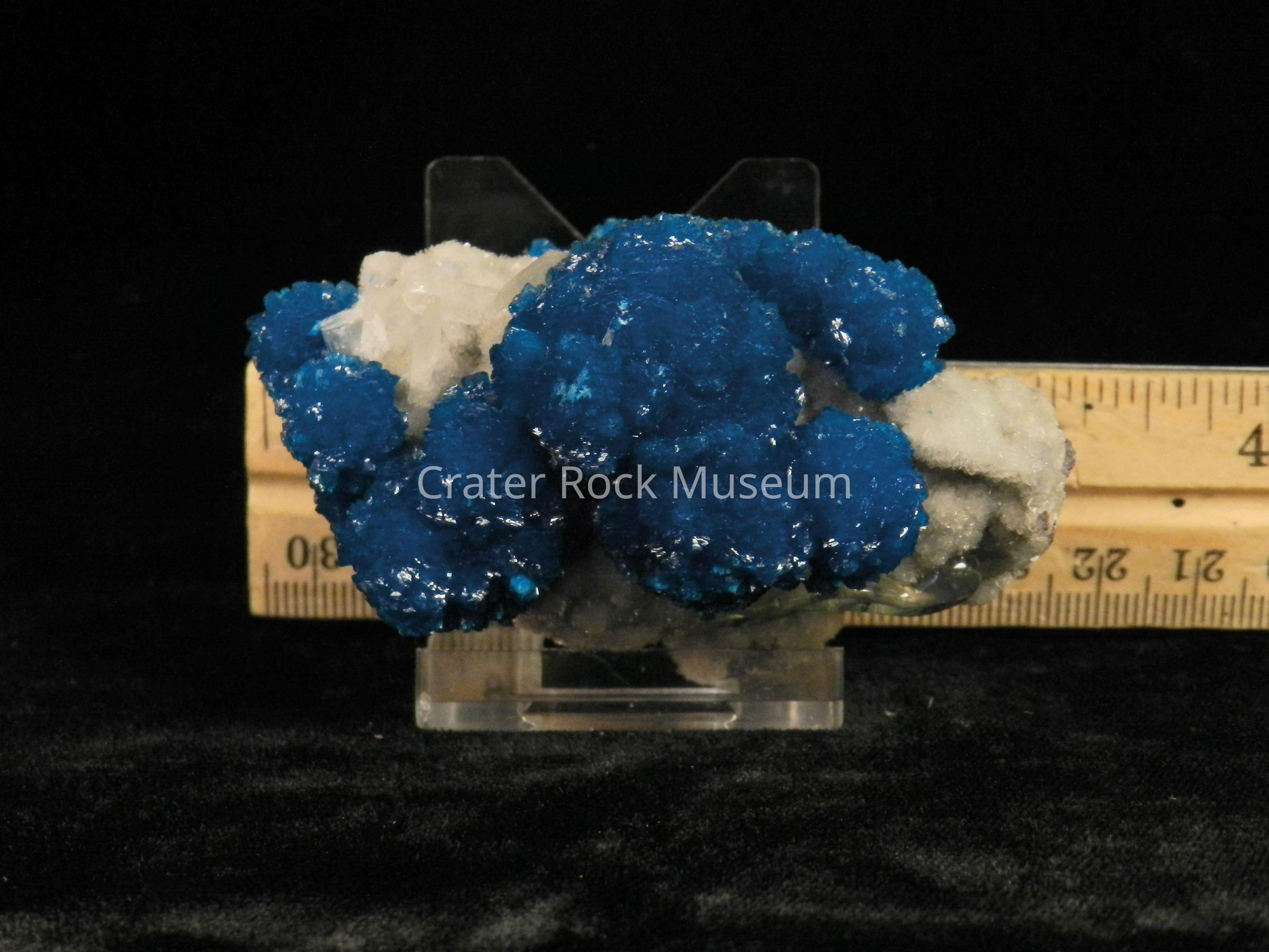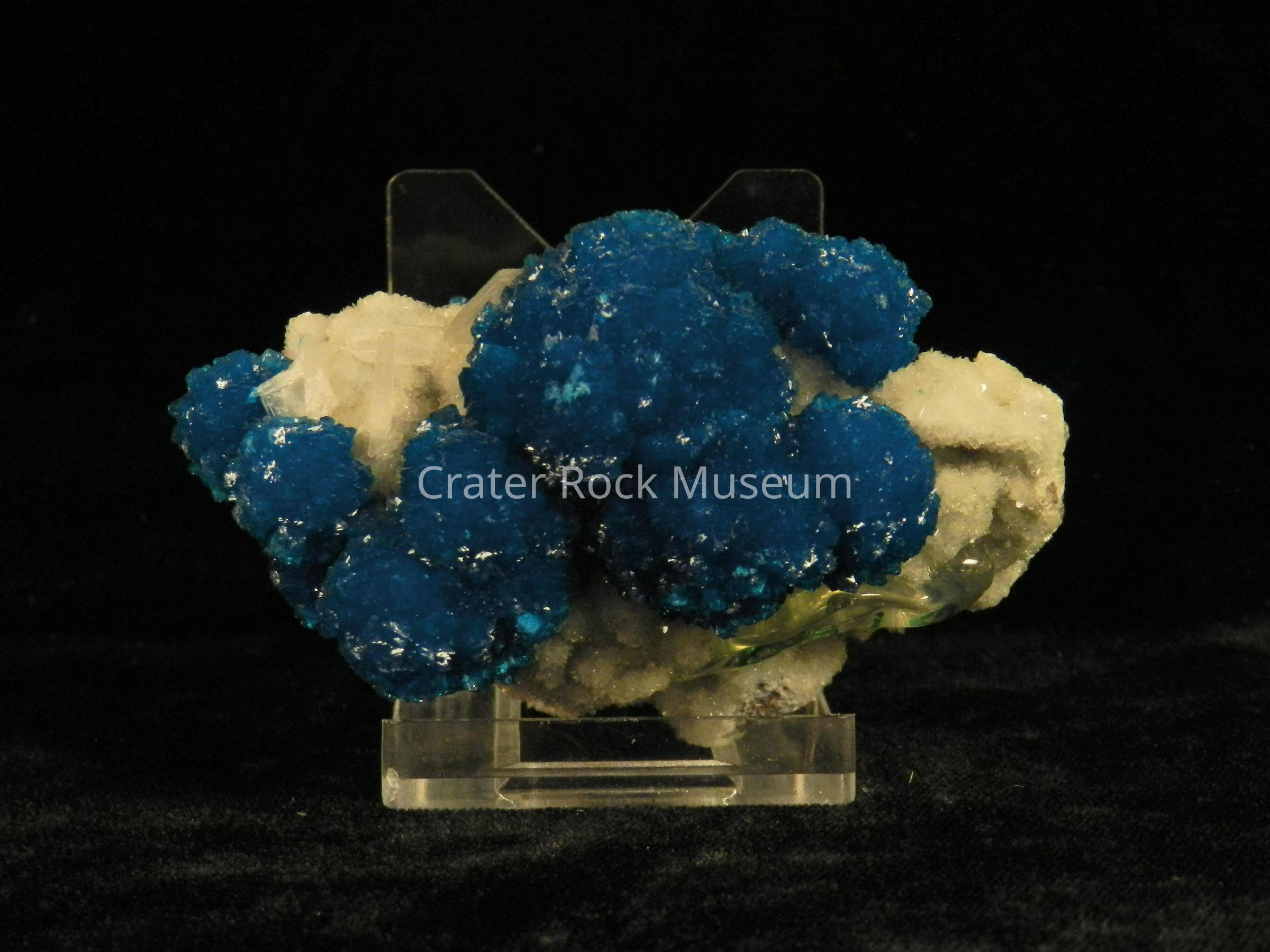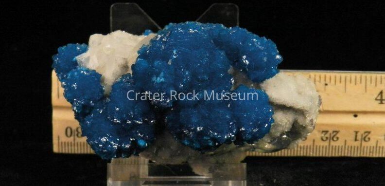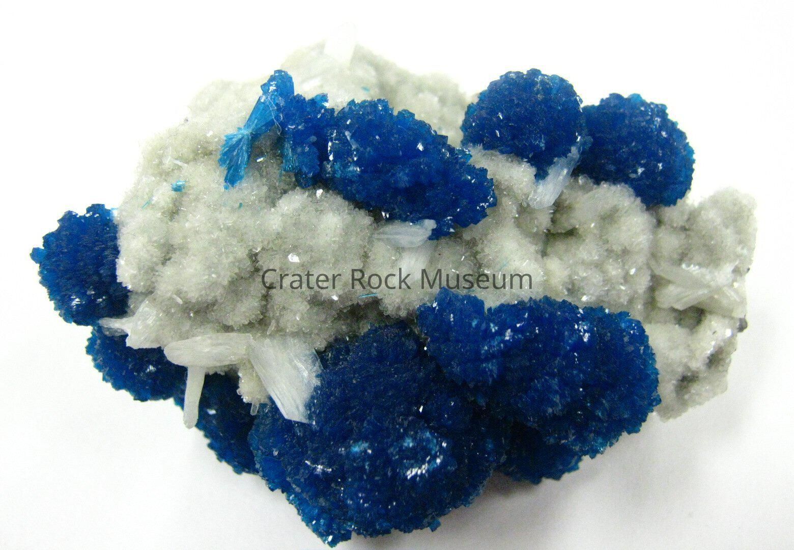 Variety: Cavansite is a beautiful and rare mineral. It was only discovered in the last 30 years and is found in only a few locallities. By far the best crystals come from the famous zeolite quarries in Poona, India. Crystal aggregates consist of spherical rosettes with jutting pointed crystals. The deep blue color of even the smallest cavansite crystals is truly amazing. A beautiful blue cavansite rosette perched on top of the muted colors of the typical zeolites makes a dramatic crystal association. Cavansite's rarity and beauty explain its recent popularity.Collection
