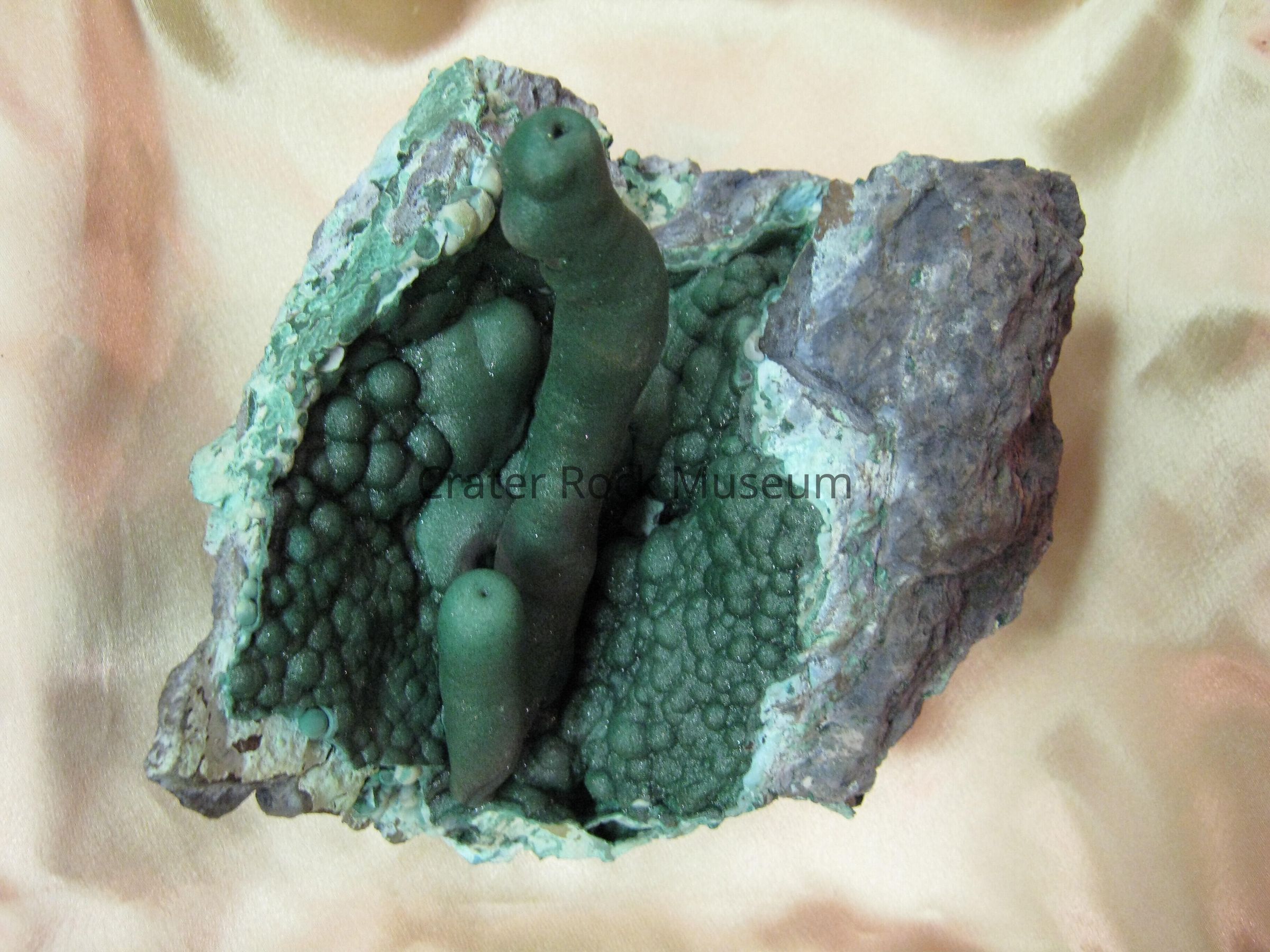 Description: Name description: Malachite vug with 2 stalactiles.