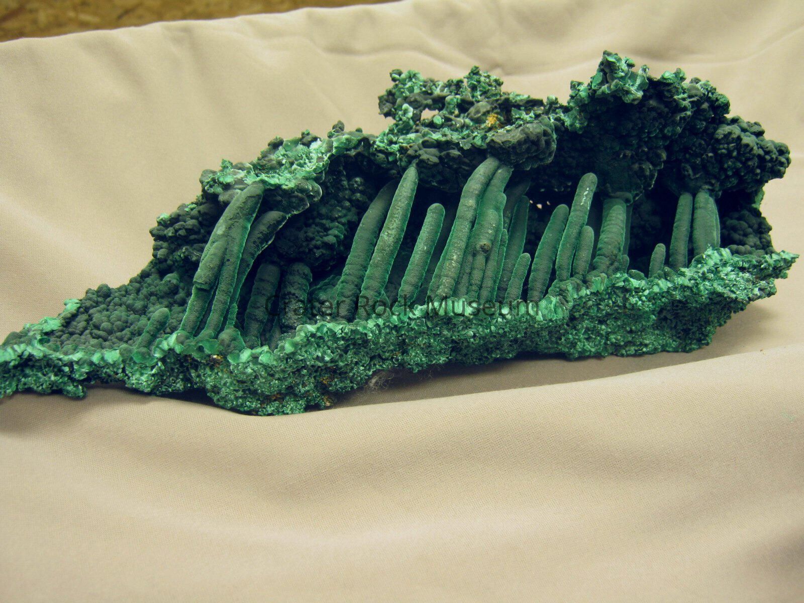 Crystal Habitsin its massive forms are botryoidal, stalactitic or globular. Crystals are acicular or fibrous and form in tufts and encrustations. Frequently found as pseudomorphs of azurite.