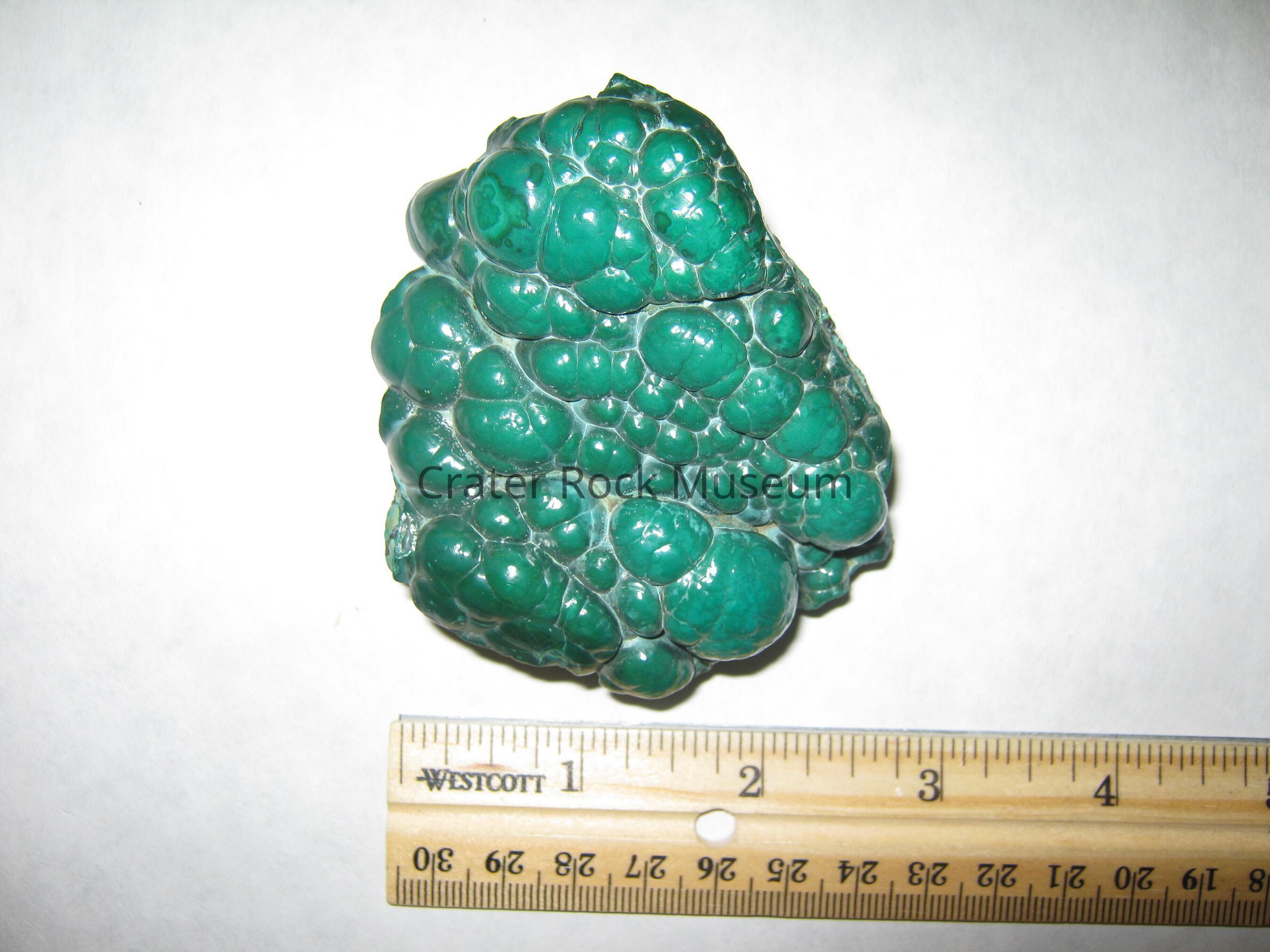 Malachite has a mineral impostor called pseudomalachite. Pseudomalachite is a copper phosphate that has a massive crystal habit and color that are very similar to malachite's habit and color, although the two minerals have different structures. Pseudomalachite means "false malachite" in latin and is very rare compared to malachite.