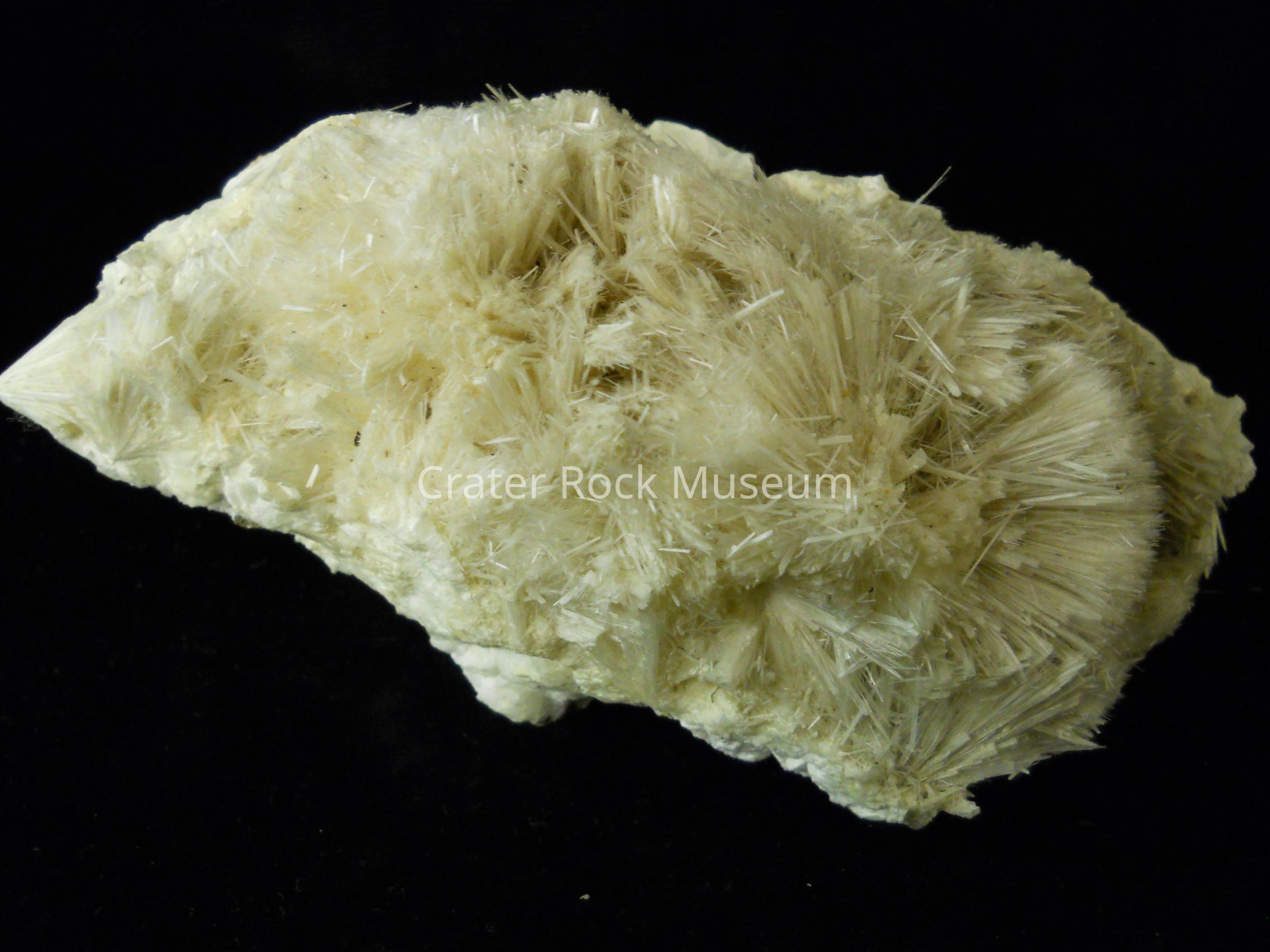 Variety: Natrolite, a sodium zeolite, scolecite, a calcium zeolite, and mesolite, a calcium and sodium zeolite, are closely related and sometimes found together. The presence of calcium in two of the minerals makes the structure slightly different from that of natrolite; it is altered from an orthorhombic symmetry to a monoclinic symmetry. However, the twinning of scolecite and mesolite often make them appear orthorhombic. All three minerals are referred to as "chain" or "needle" zeolites. They are similar and difficult to distinguish when in clusters with radiating, acicular habits. Natrolite tends to forms thin crystals with pyramidal terminations, but mesolite's fiber-like crystals are usually the thinnest of the three. Scolecite's larger crystals tend to be more robust and durable. These characteristics are only generalities, though, and can not be used as dependable identifying traits; absolute identification cannot be made by ordinary means.Collection