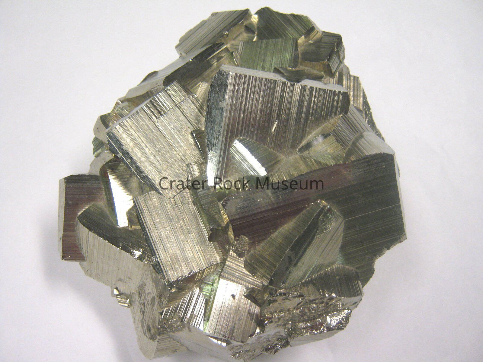 Other Characteristics: Brittle, striations on cubic faces caused by crossing of pyritohedron with cube. (note - striations on cube faces also demonstrate pyrite's lower symmetry). Pyrite (unlike gold) is not malleable.