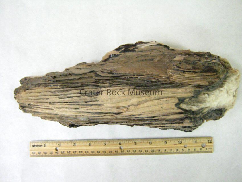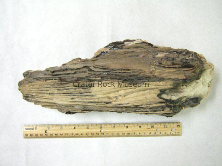 Description: A piece of partially petrified wood forund in Barnes Valley outside of Bly, Oregon, (South Central Oregon). the piece is fragile in the it chips easily and contains many cracks. The petrified part of the wood is in colors of brown and black. The non-petrified parts are cream colored. Piece is probably from oligocene epoch (tertiary period, cenozoic era)