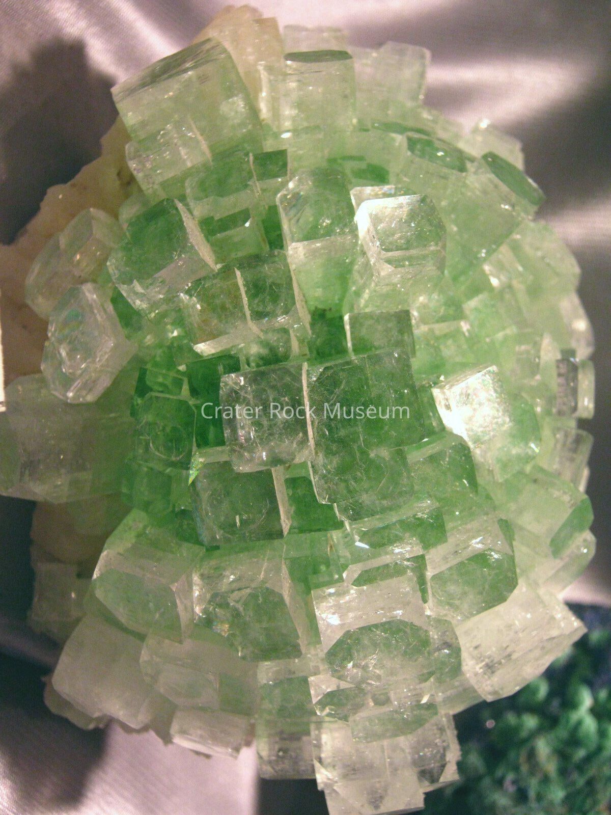 (K, Na)Ca4 Si8O20(F,OH) - 8H2O Tetragonal; 4/m 2/m 2/m White, colorless, green, yellow or violet. Some specimens fluoresce pale green or yellow.