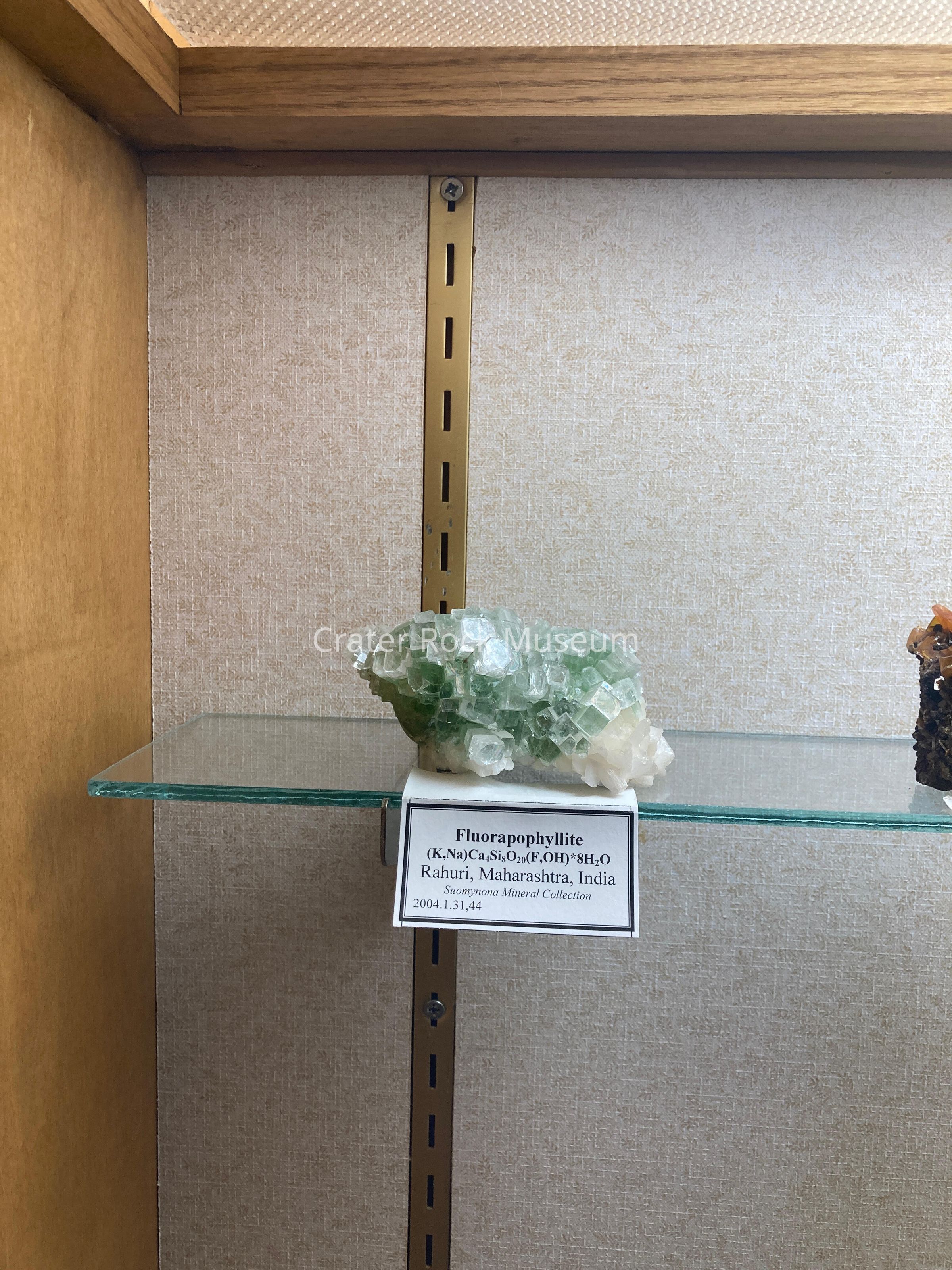 Crystal System is tetragonal; 4/m 2/m 2/m; natroapophyllite is orthorhombic, 2/m 2/m 2/m.