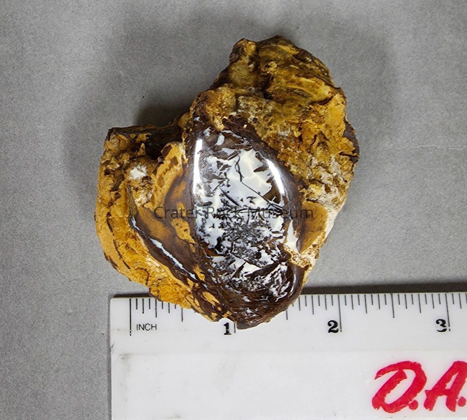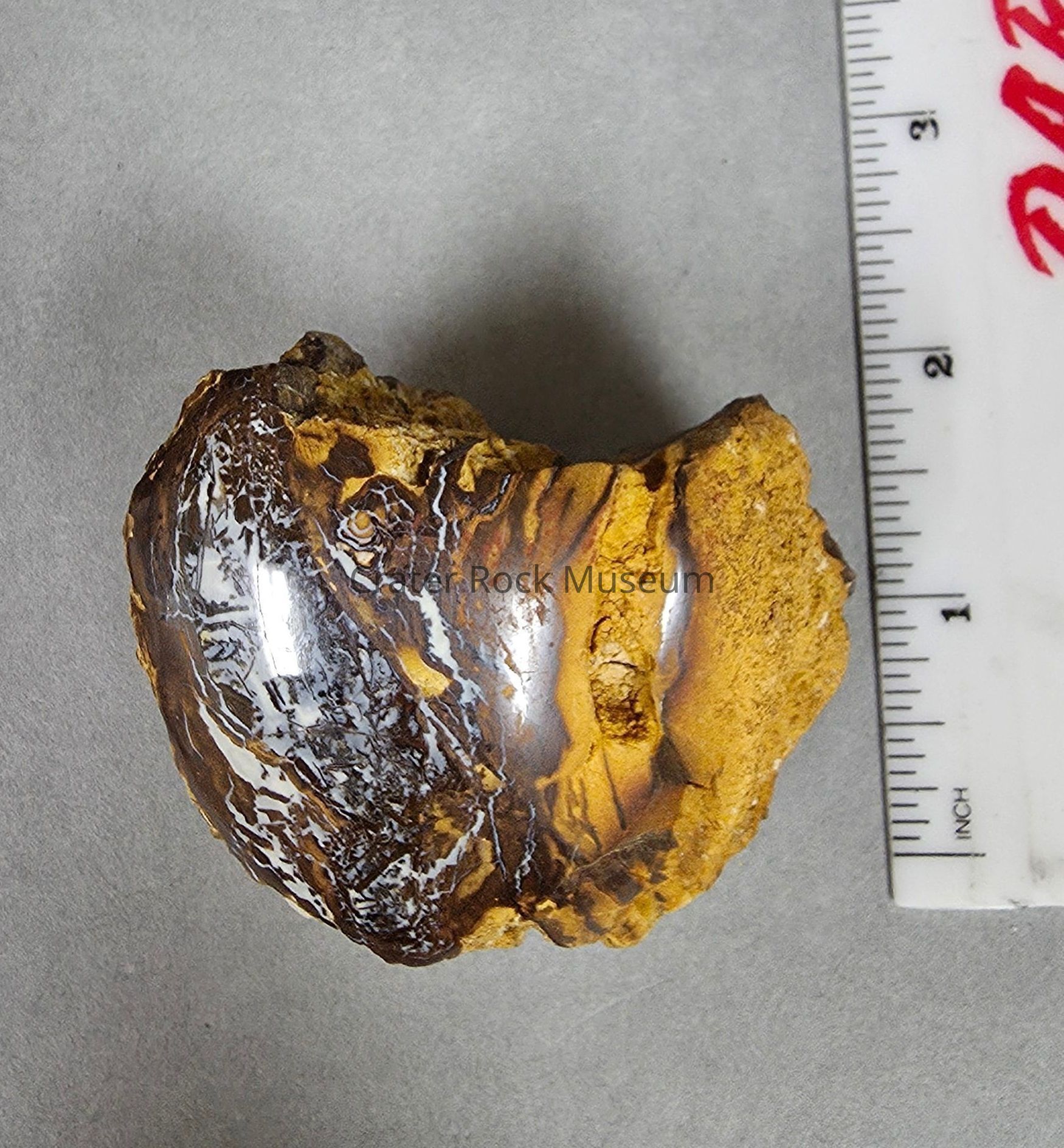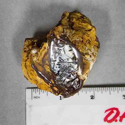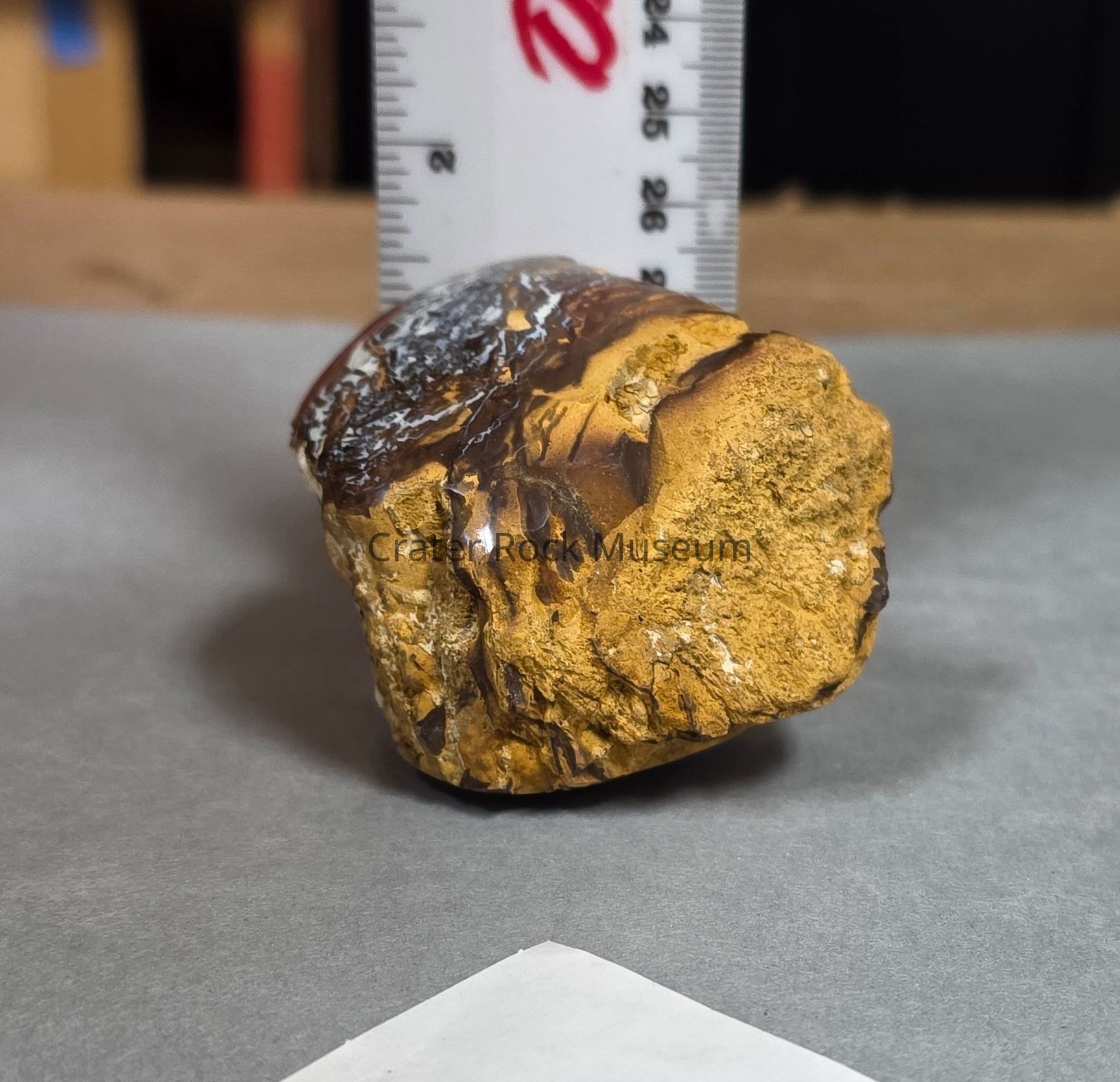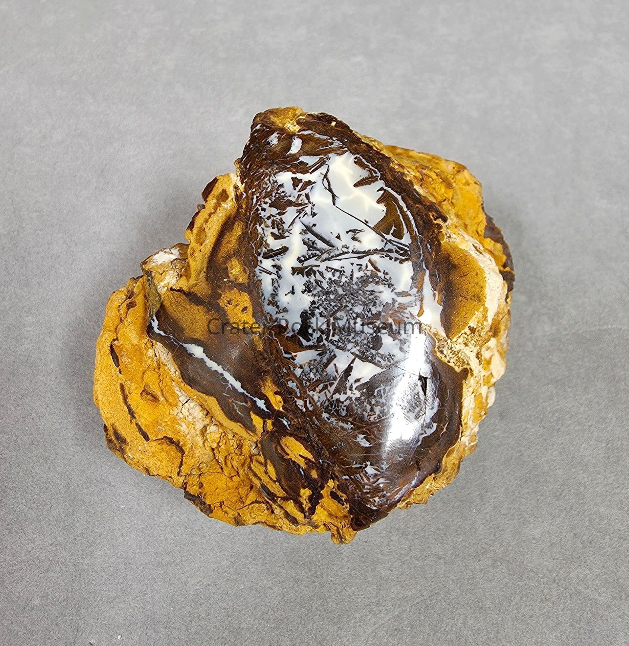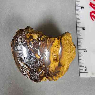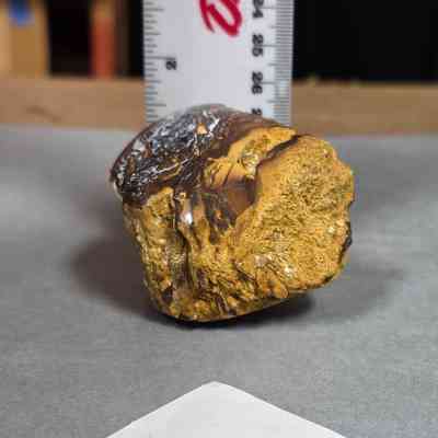 Roughly cubiod with convex base and top piece of wood opal from Australia (boulder opal field?)