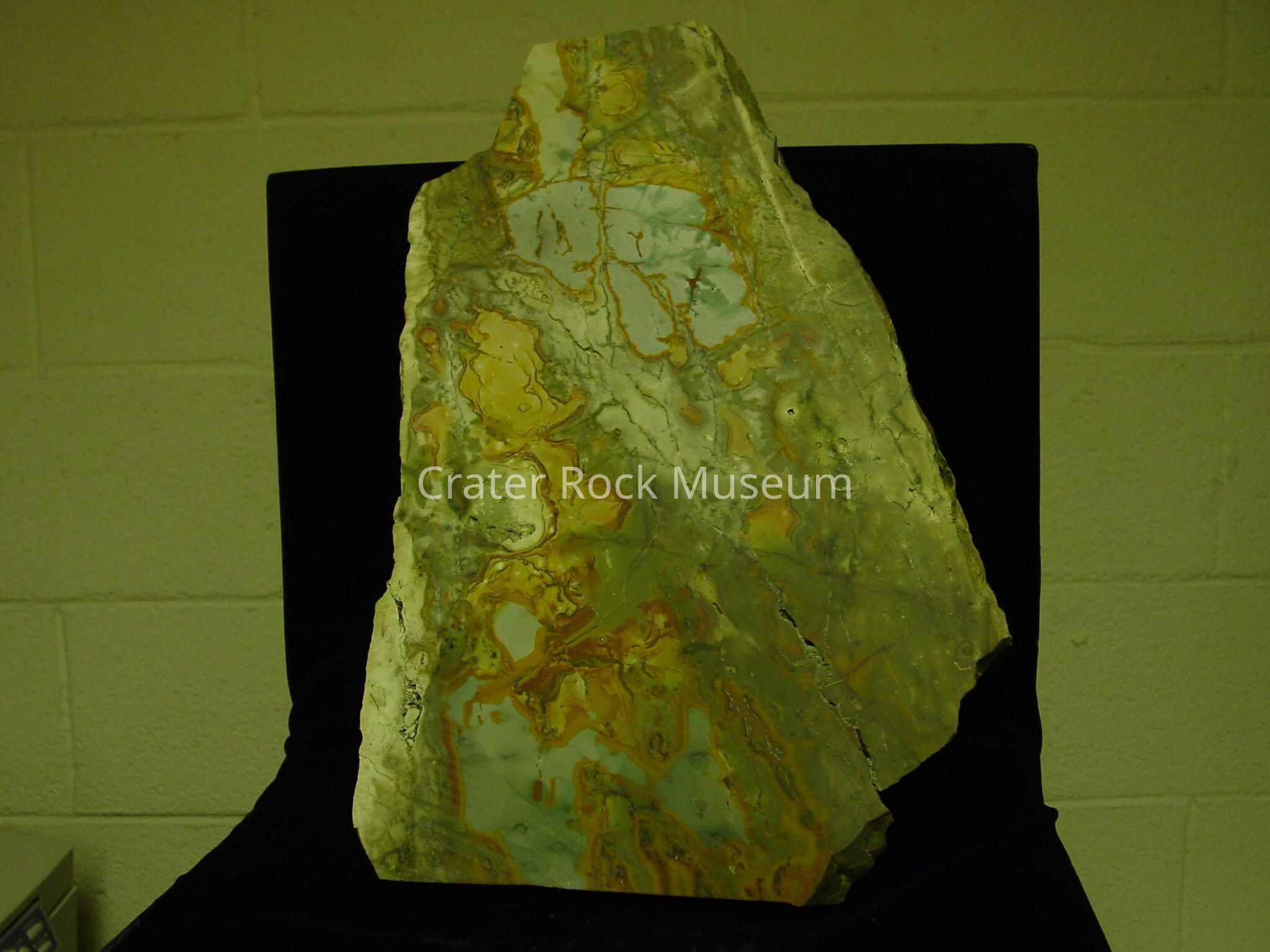 Description: This is a Jasper slab, cut on two edges one face. Colors are patchy greens, tans reddish-brown, blue-grey and creamy whites.Collection