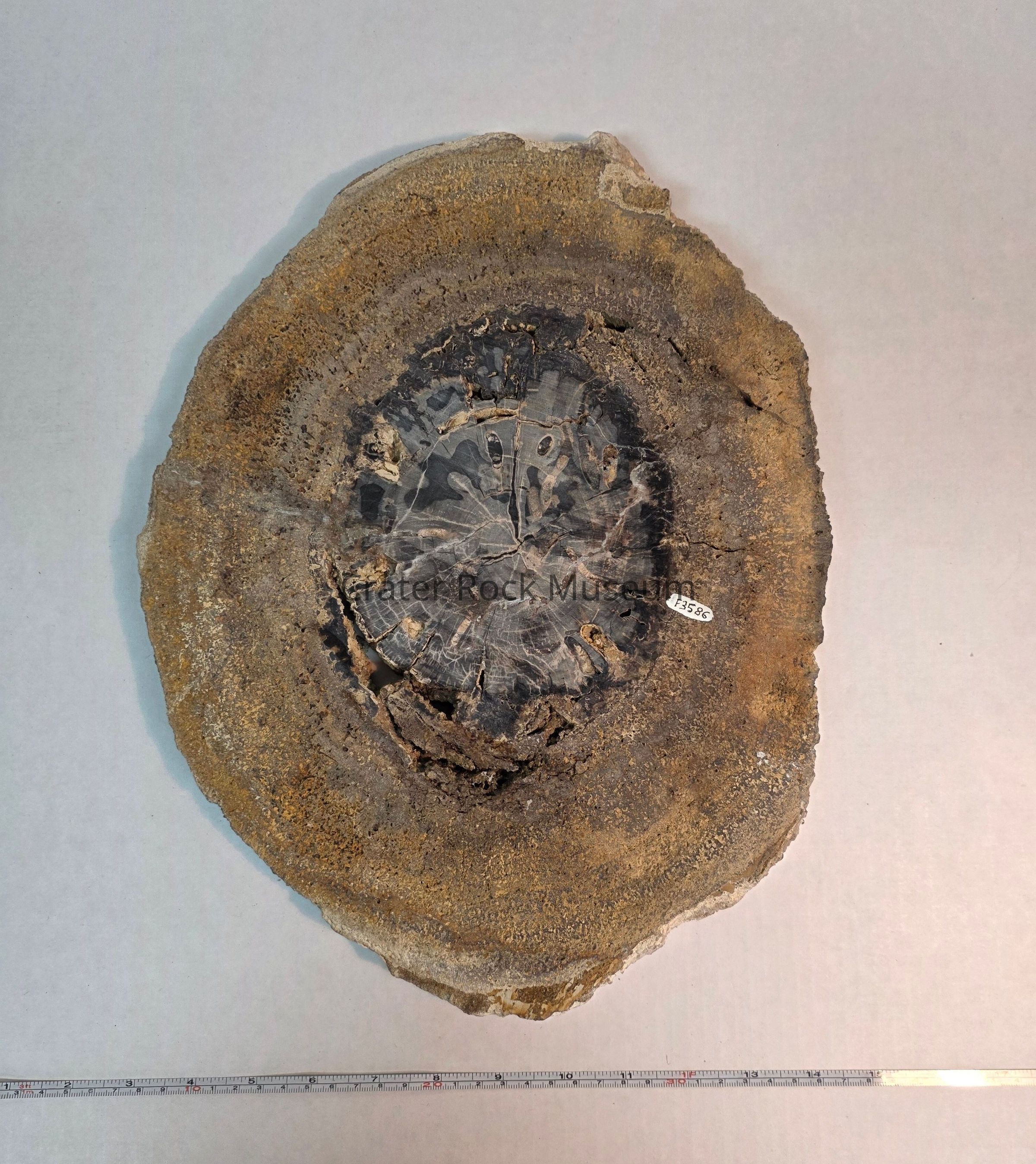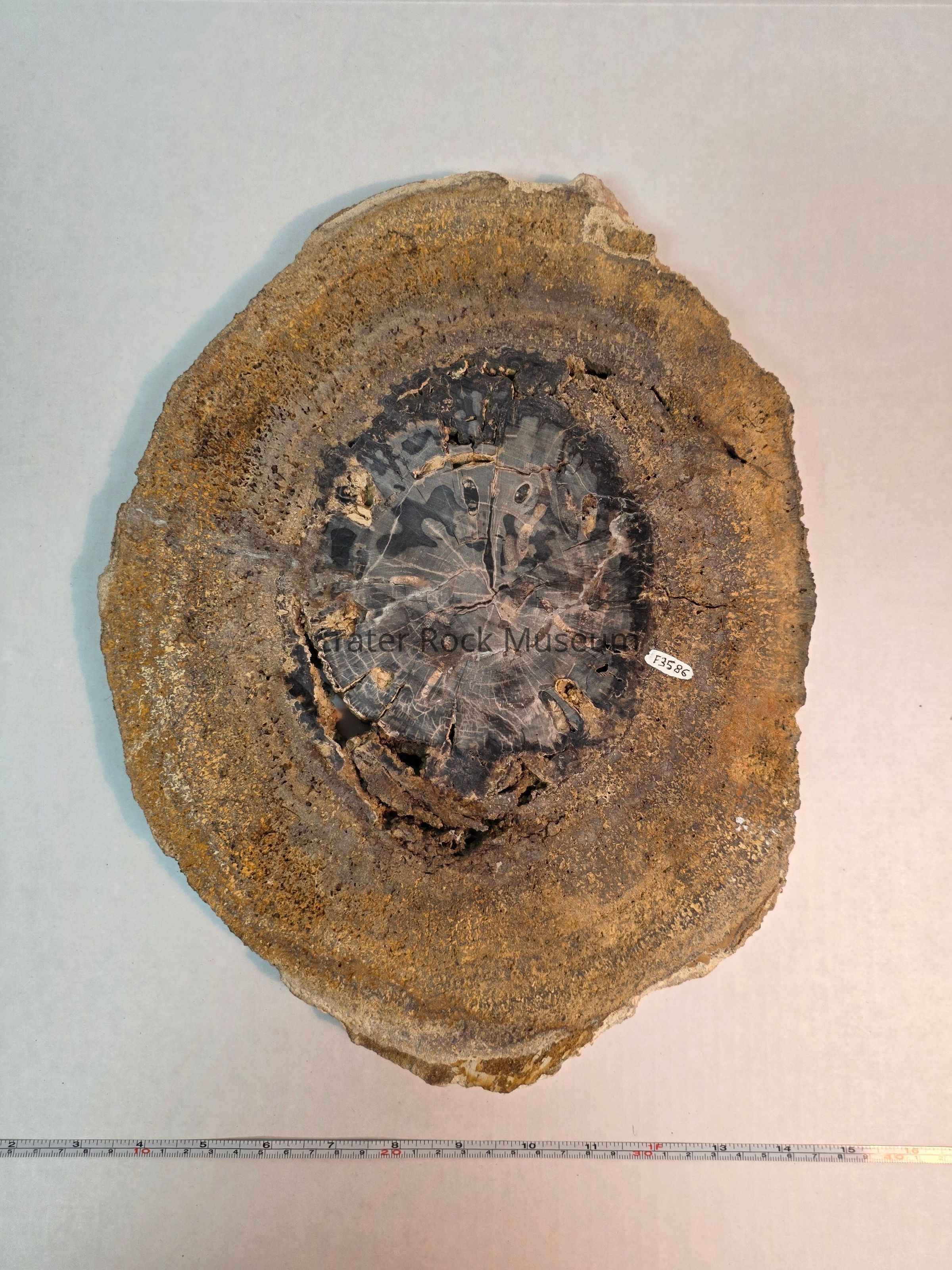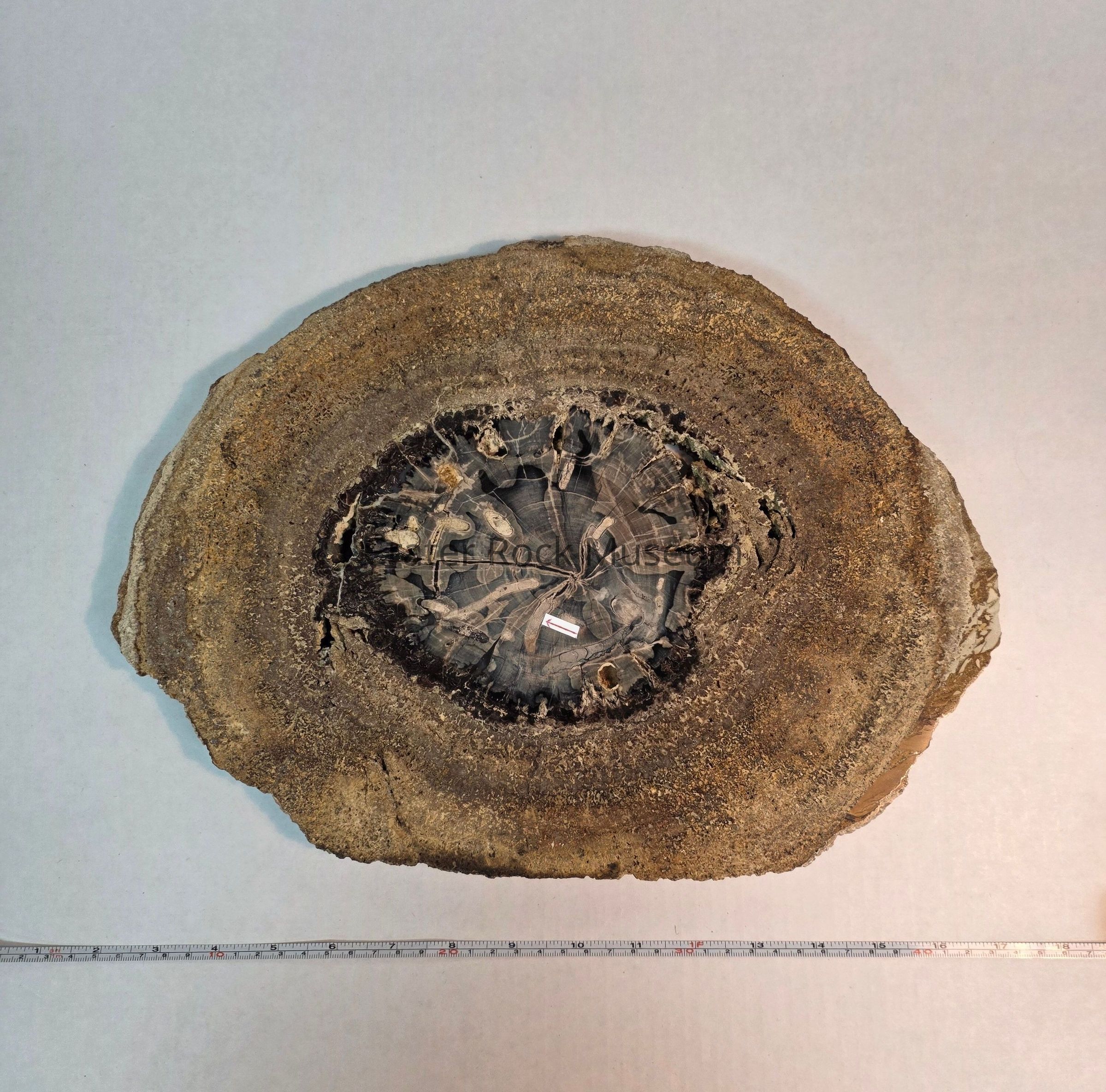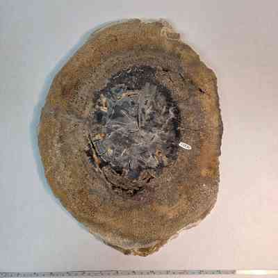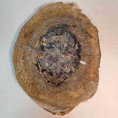 Schinoxylon (sp.) with petrified algae exterior and beetle larvae burrows