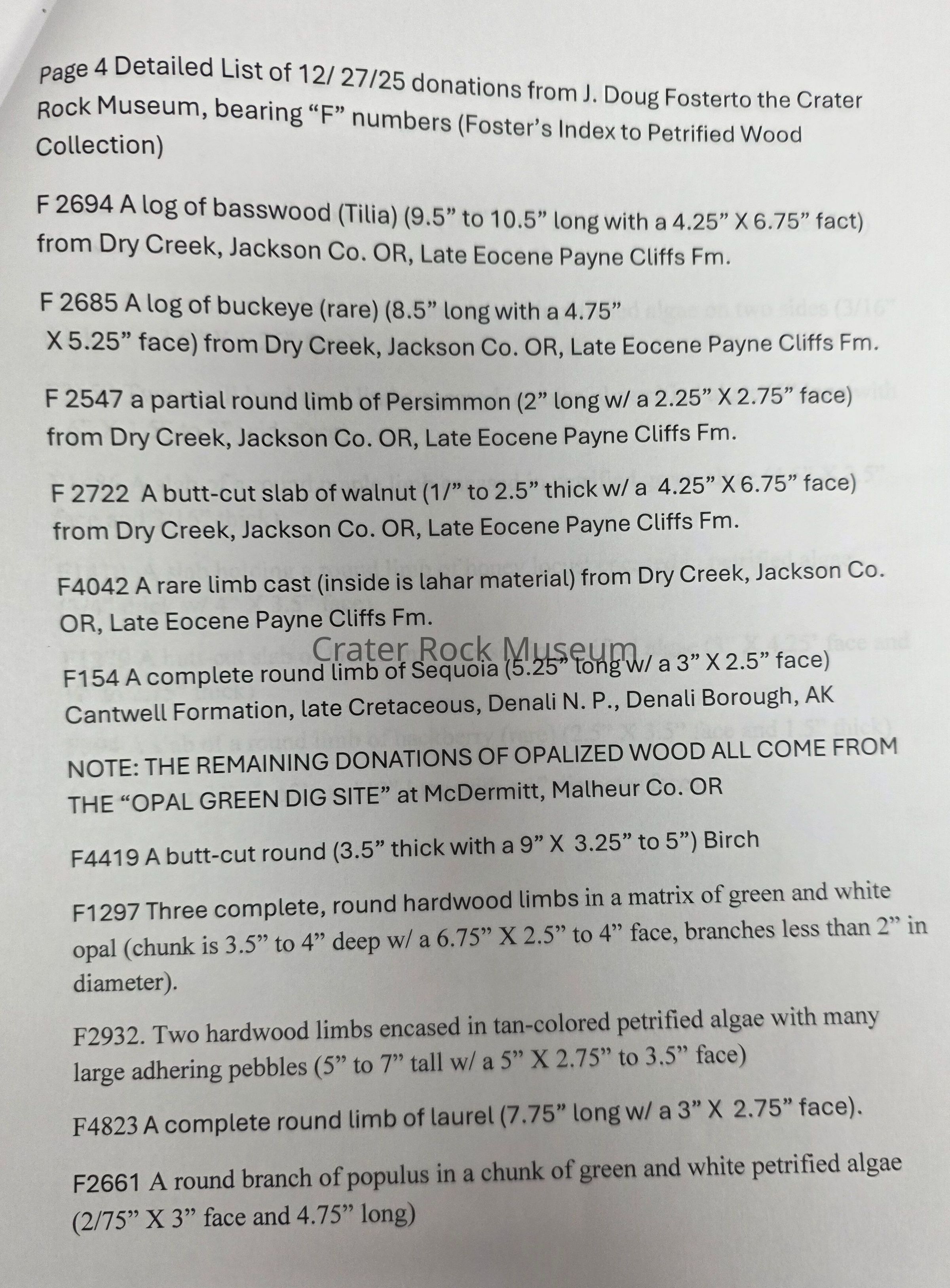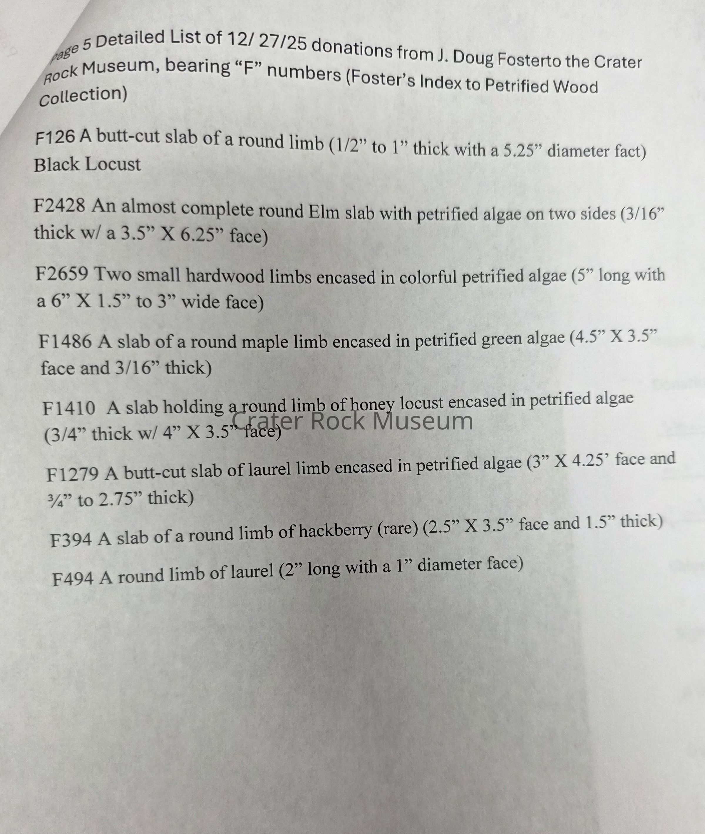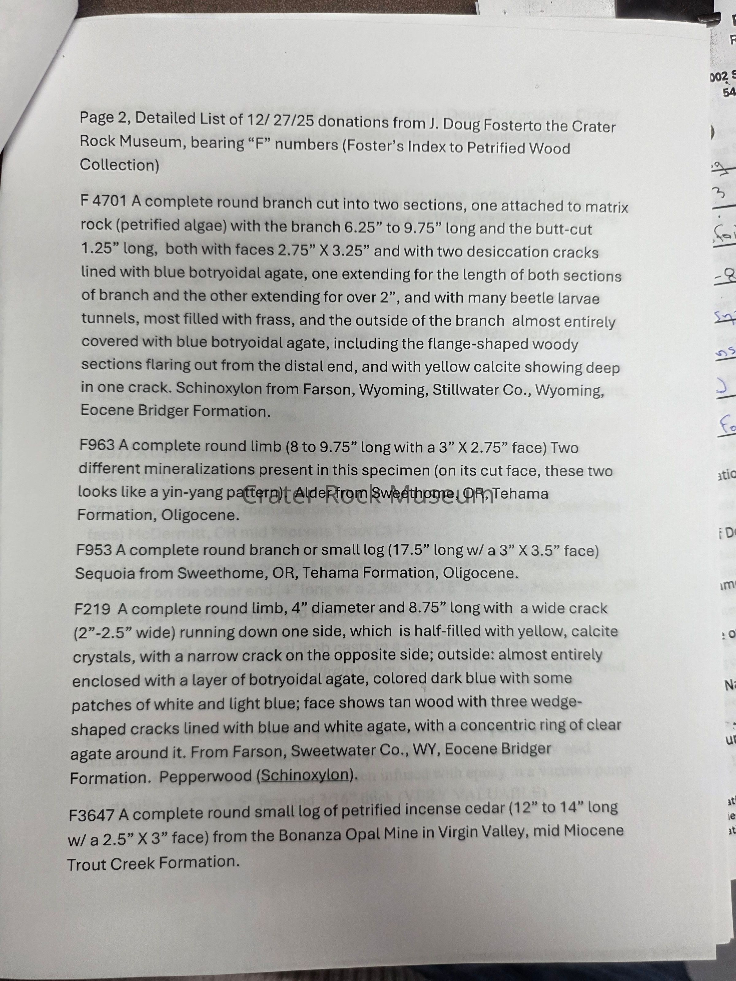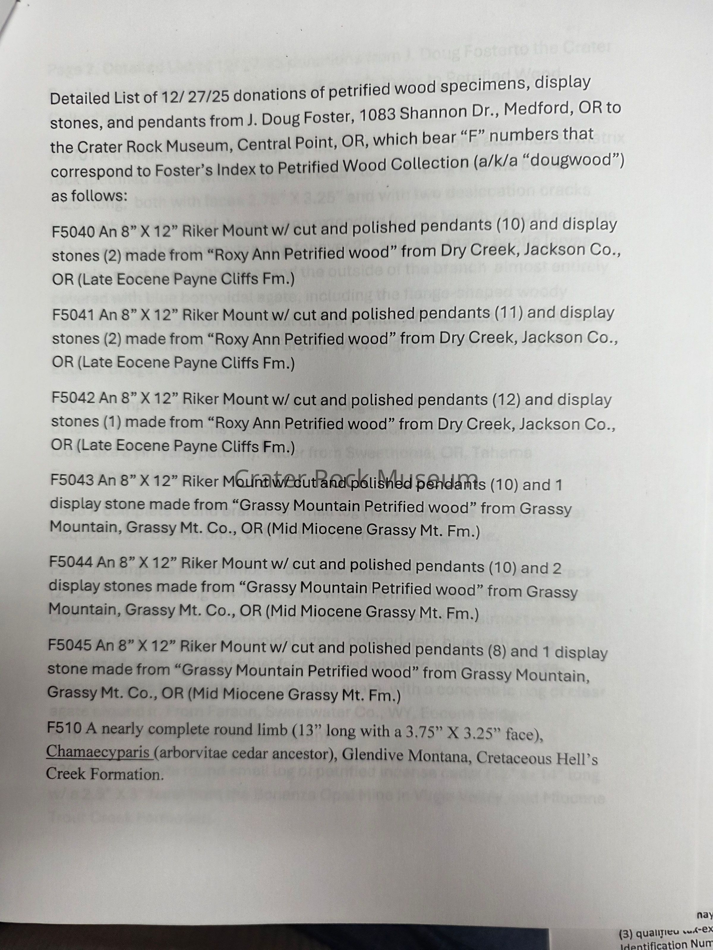 Petrified Wood Donation - Riker (5)Entry/Object ID