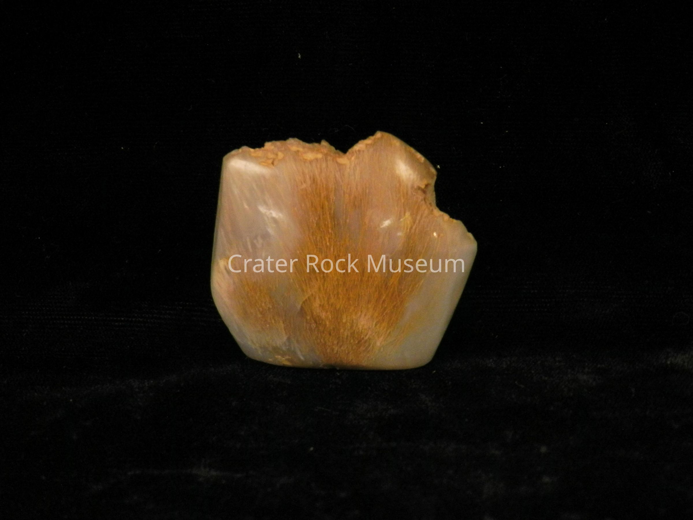 Description: Flat, smooth back with convex polished face. Tranlucent blue-gray with fine golden splaying.Collection