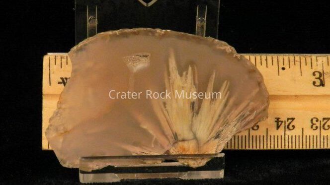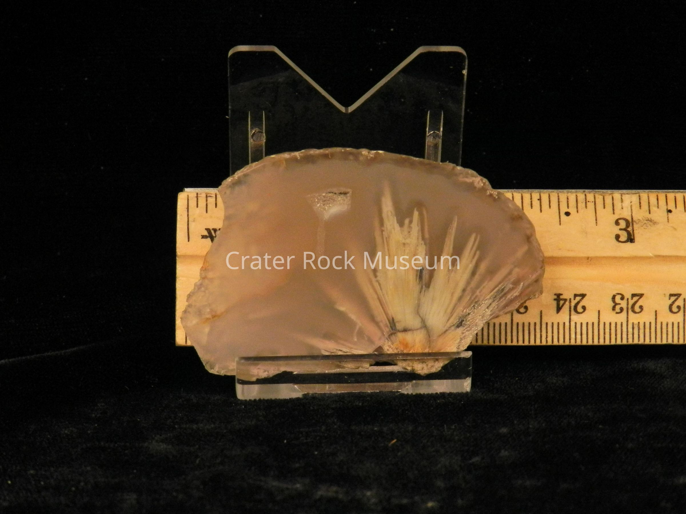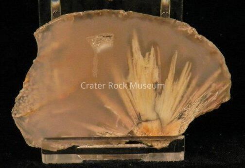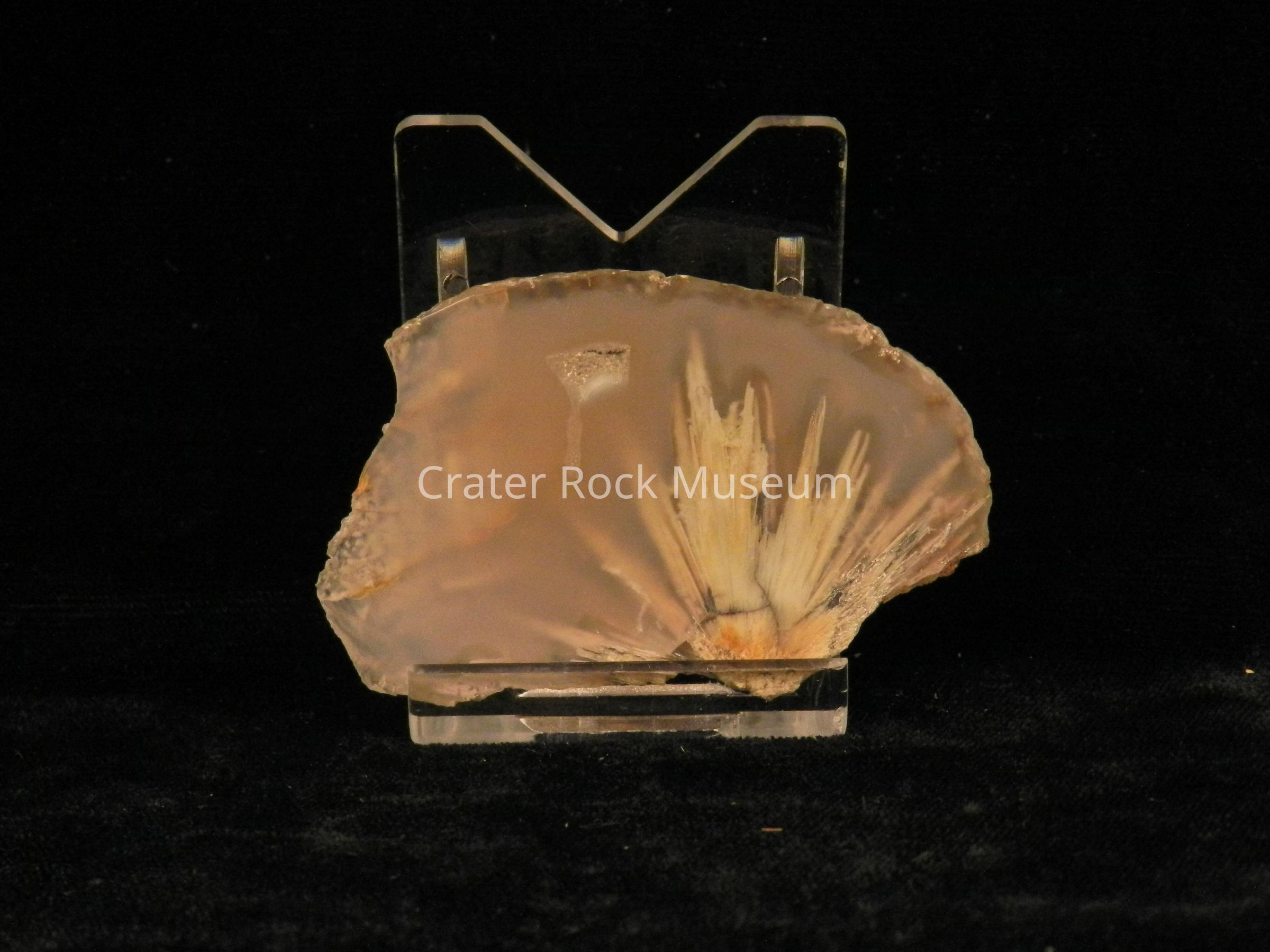 Description: Rough back with polished face. Transparent beige with one area of transparent dull white and tan splaying.Collection